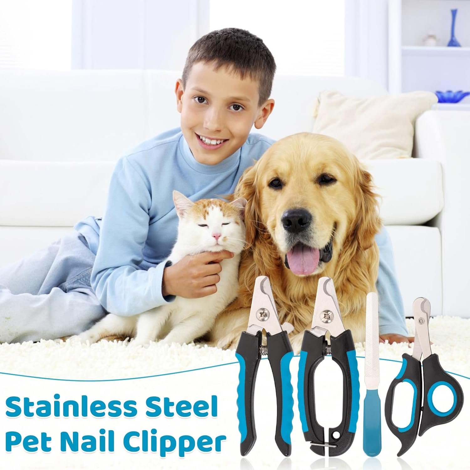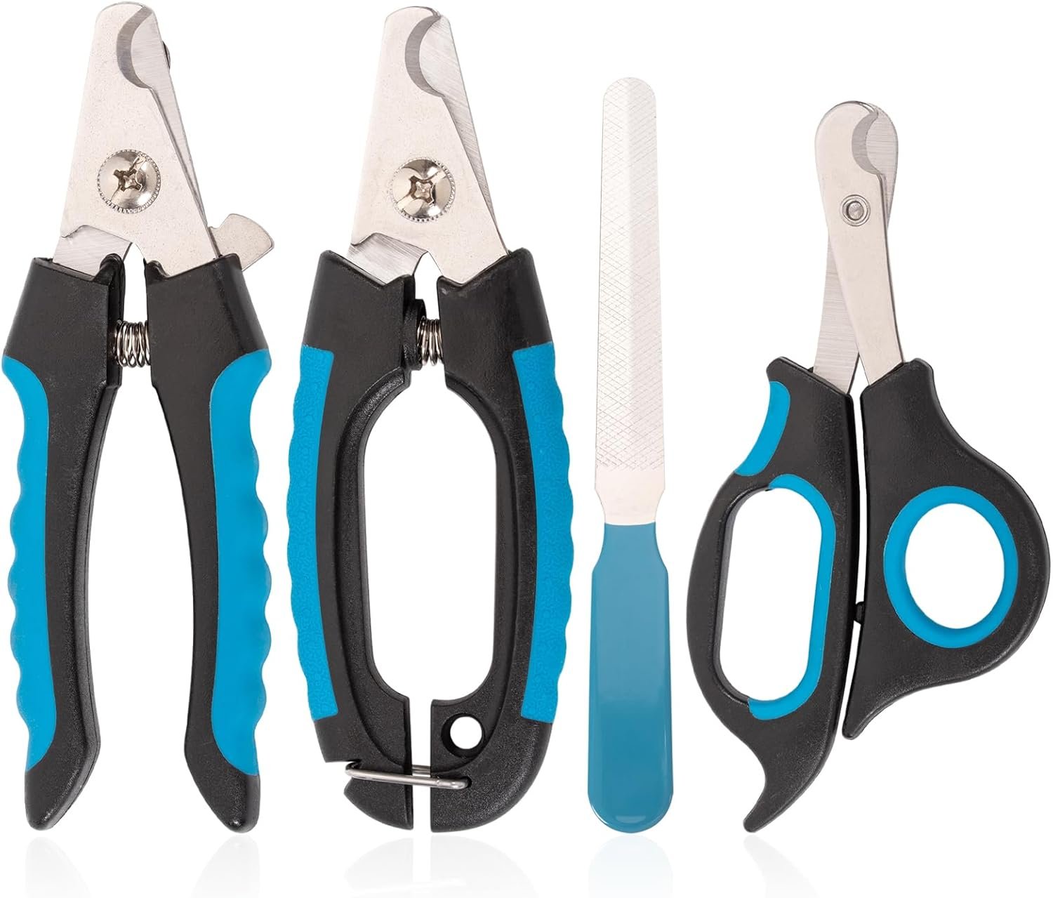 Haustierpflegeset: Dieses 4-teilige Nagelpflegeset für Haustiere enthält 3 Nagelknipser und 1 Nagelfeile. Die ergonomischen Griffe bieten einen bequemen, rutschfesten Halt für den Einsatz zu Hause oder in professionellen Tiersalons. Die Nagelfeile dient zum Glätten der Kanten nach dem Schneiden