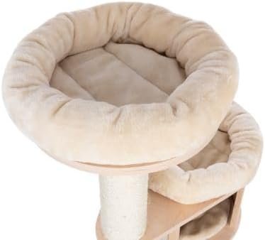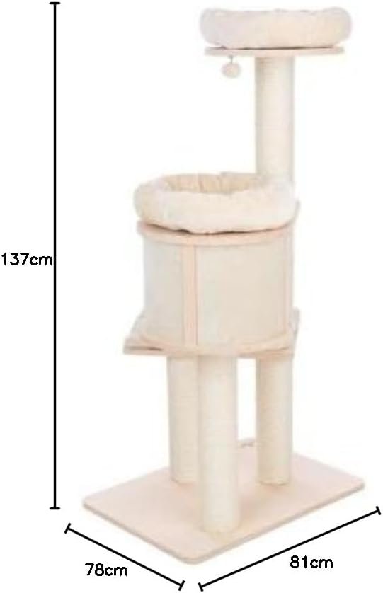Ein dekorativer Katzenkratzbaum, der sich durch sein modernes Design harmonisch in den Einrichtungsstil vieler Häuser einfügt: Der Kratzbaum Magnolia L von Natural Paradise bietet mehrere Plattformen mit weich gepolsterten Liegeflächen und ein rundes Häuschen, das als Rückzugsort dient. Als Verbindung zwischen den Ebenen dienen lange robuste Kratzbäume mit Sisal. Damit auch dann nichts verrutscht, wenn es mal etwas wilder zugeht, sind die Polster des Natural Paradise Kratzbaums Magnolia L fixiert. Das kann passieren, denn die angebrachten Spielbälle mit Rassel und Gummikordel laden zum Spielen ein. Eine schwere Grundplatte sorgt für Halt und Stabilität. Hinweis: Nur zur Verwendung im Innenbereich. Hinweis: Stellen Sie sicher, dass Sie die Fleeceseite des Bettes an der Befestigung befestigen. Denken Sie daran, dass Sie das Bett möglicherweise umdrehen müssen, wenn der Plüsch auf der Unterseite liegt.