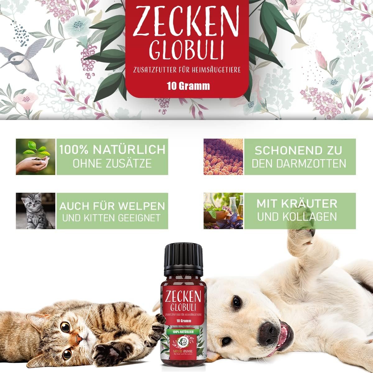 Top-Alternative zu herkömmlichen Mitteln wie Anti-Zecken-Tropfen, Presslinge, Kapseln, Zeckenspray, Spray, Flohhalsband, Zeckenhalsband, Hundeshampoo, Zeckenband, Zeckenkamm, Flohkamm, Zeckenpinzette. Auch für Welpen/Welpen geeignet.