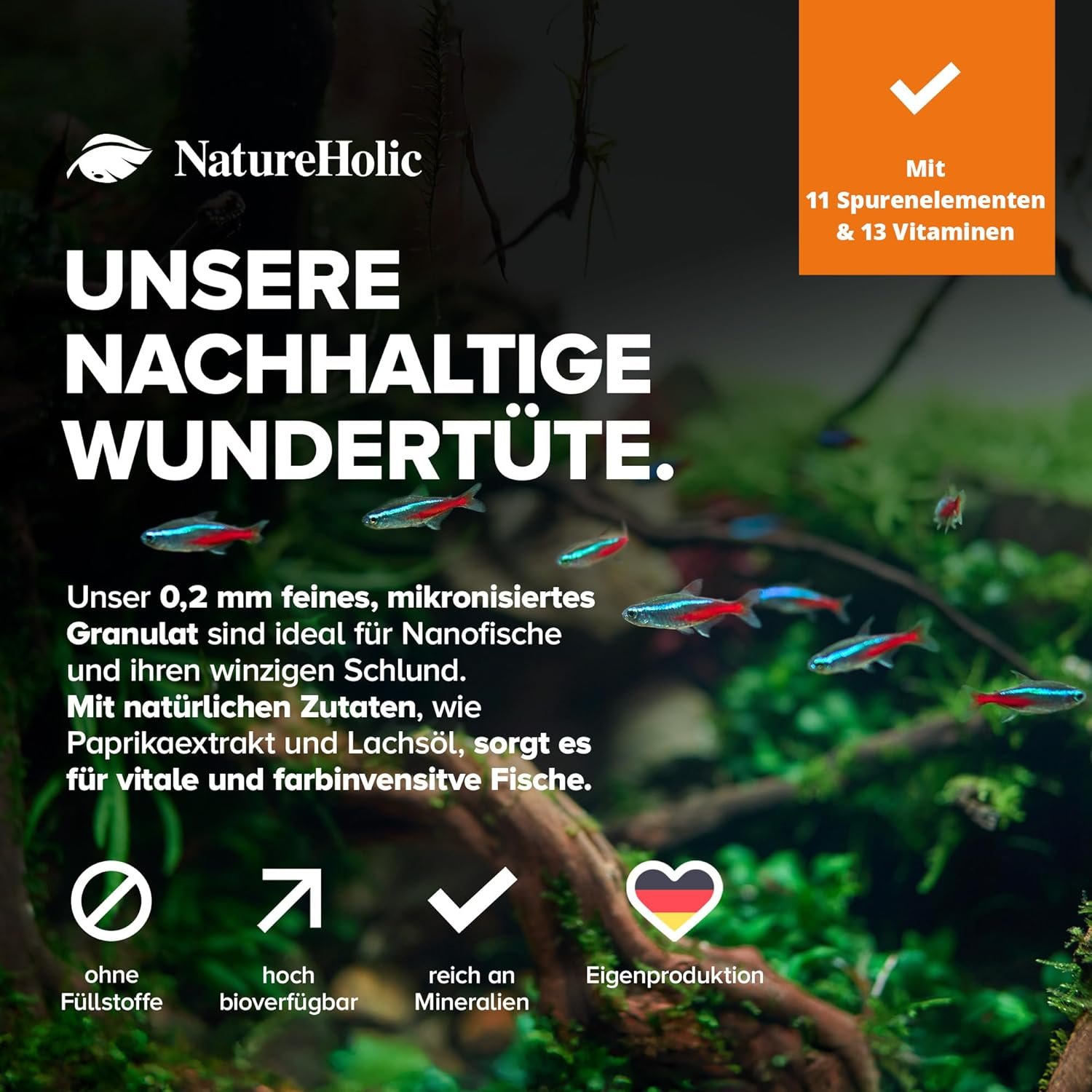 GELD-ZURÜCK-GARANTIE: Ihre Fische werden dieses Futter lieben – und wenn nicht, erstatten wir Ihnen Ihr Geld ohne Wenn und Aber zurück. NatureHolic steht für Qualität, die überzeugt