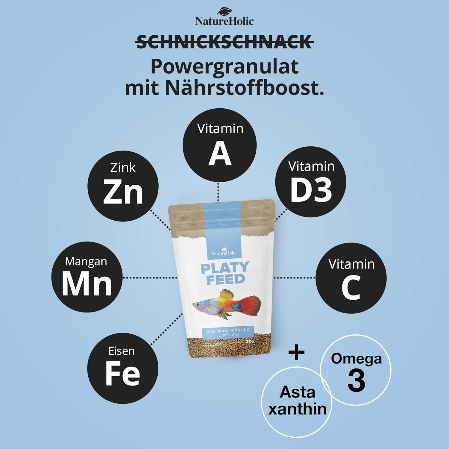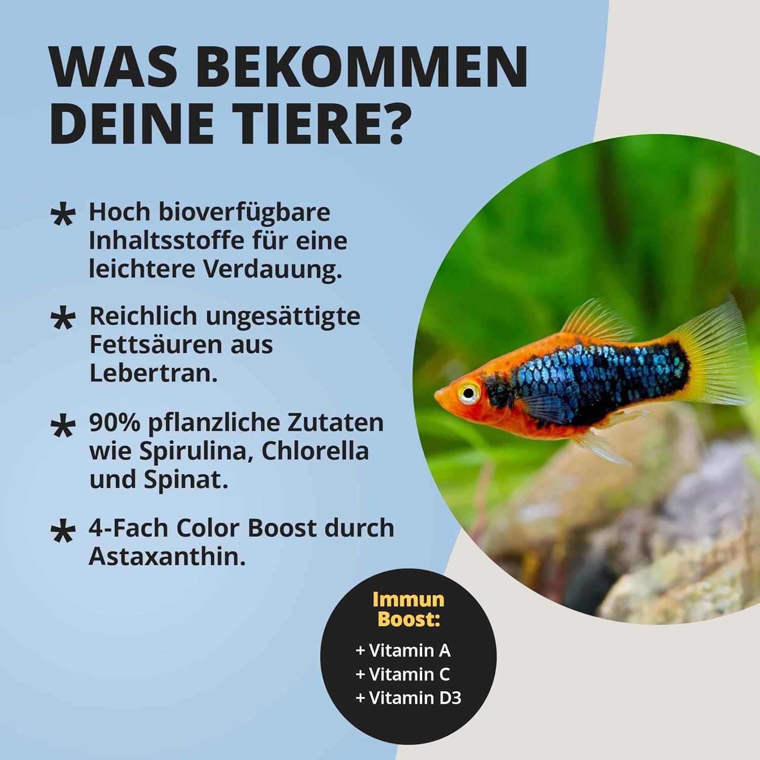 Optimal: Korngröße 0,7-1,0 mm ideal für Platys, Mollys, Schwertträger, Guppys etc. Leicht zu fressen
