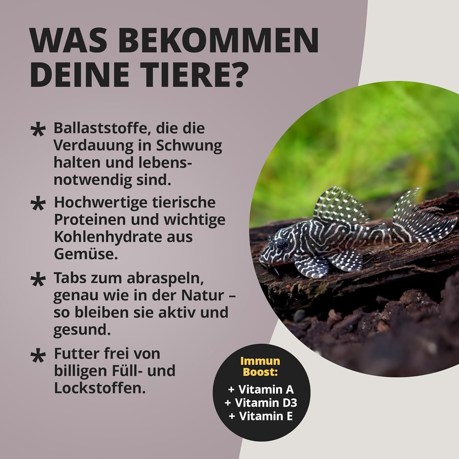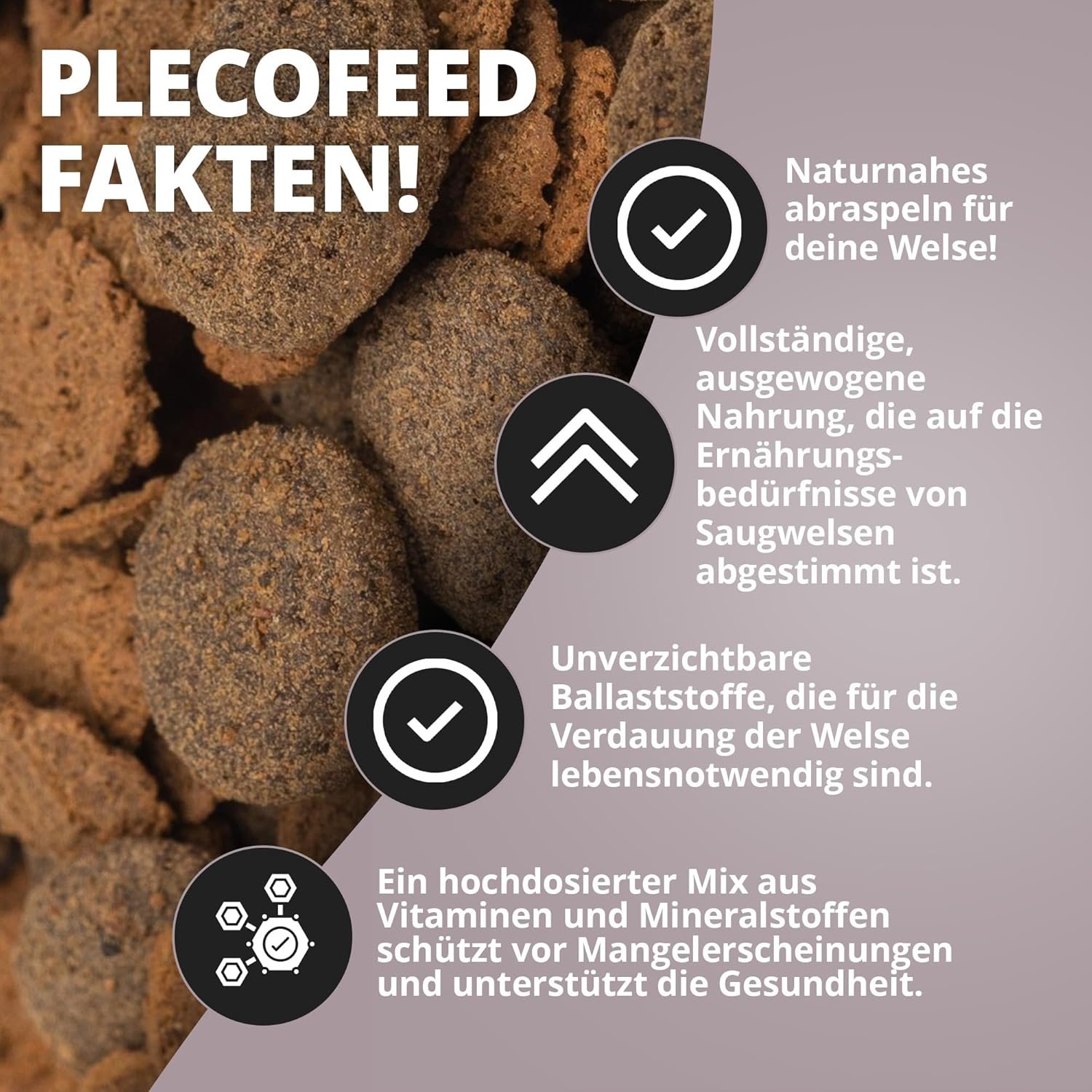 Spezialfutter: Professionell für den Saugwels entwickelt, versorgt mit tierischen Proteinen und kohlenhydratreichem Gemüse