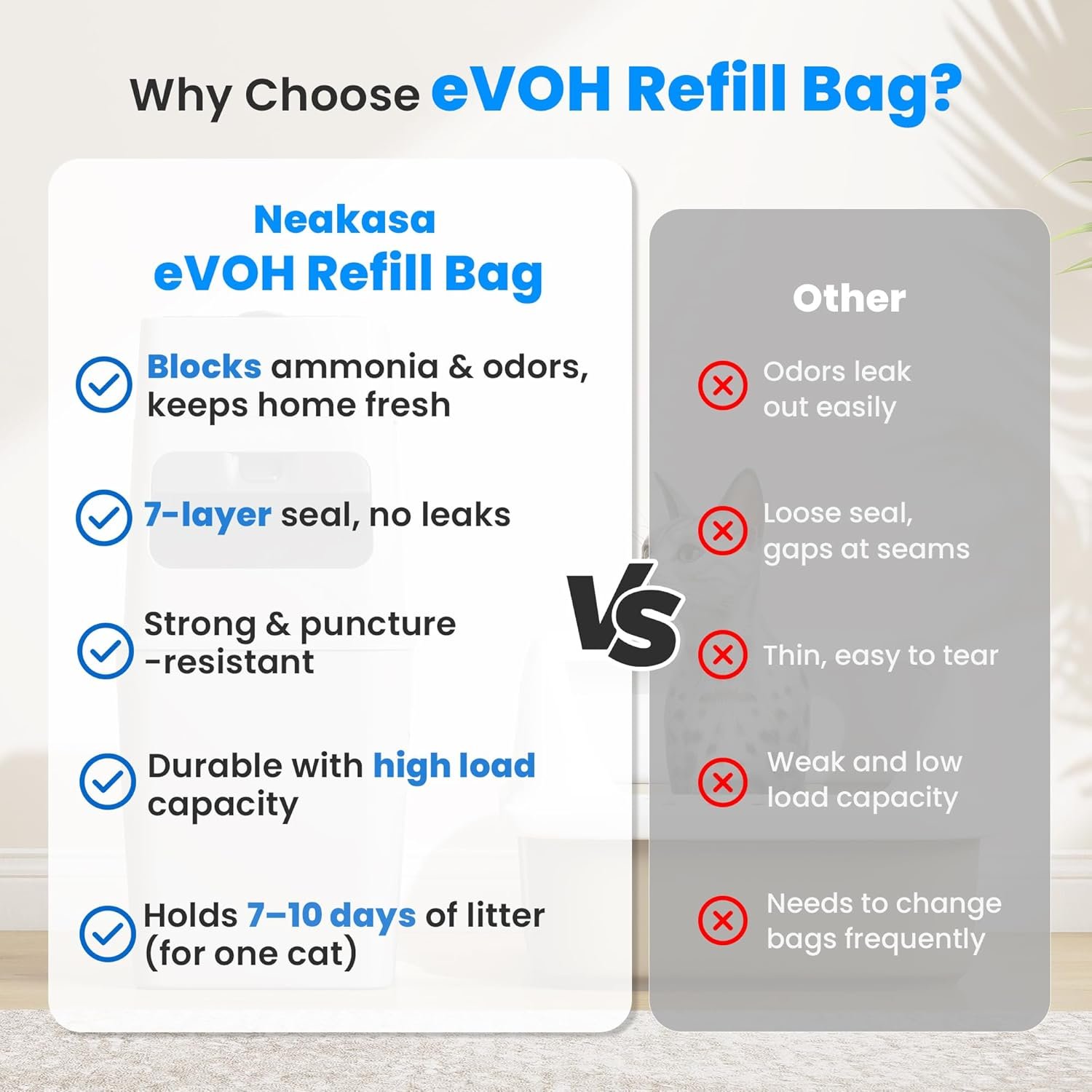Neakasa PooGuard Katzenstreubehälter zur Geruchskontrolle, inklusive 1 Rollen-Nachfüllbeutel