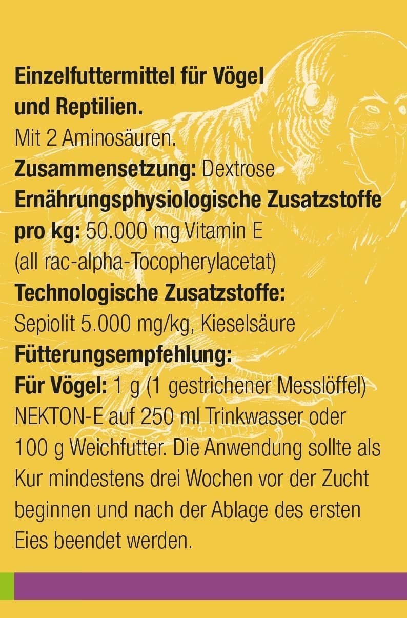 Speziell für die Zucht – für eine erfolgreiche Vogel- und Reptilienzucht ist NEKTON-E die ideale Futterergänzung als Kur.