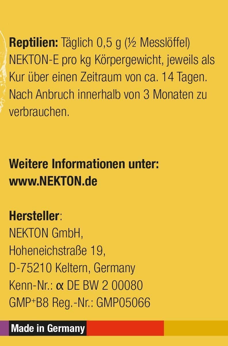 Made in Germany – Vitamin-E-Präparat für Brutvögel und Reptilien – hochwertige Futterergänzung für unsere Liebsten – unsere Produkte werden mit großer Sorgfalt und hohen Qualitätsstandards in der hauseigenen Produktion von NEKTON hergestellt. Ganz nach dem Motto „Made in Germany“.