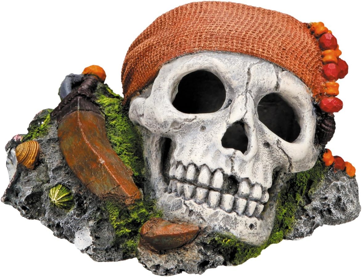 Lassen Sie sich von einer detailgetreuen Figur mit zeitlosen Motiven in eine urige Unterwasserwelt entführen. Der „Piraten Totenkopf“ ist ein eindrucksvolles Highlight für jedes Süß- oder Meerwasseraquarium. Da die Aqua Ornaments aus absolut ungiftigem Polyresin hergestellt werden, beeinflussen sie nicht das biologische Gleichgewicht.