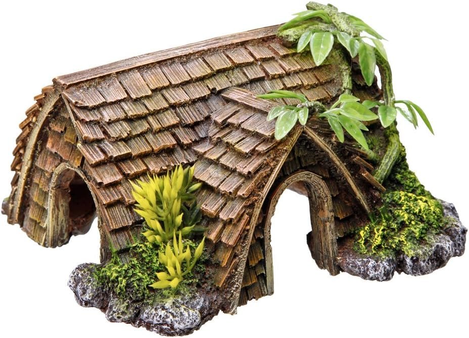 Lassen Sie sich von einer detailgetreuen Figur mit zeitlosen Motiven in eine urige Unterwasserwelt entführen. Das „Häuschen“ mit Pflanzen ist ein Highlight für jedes Süß- oder Meerwasseraquarium. Da die Aqua Ornaments aus absolut ungiftigem Polyresin hergestellt werden, beeinflussen sie nicht das biologische Gleichgewicht.