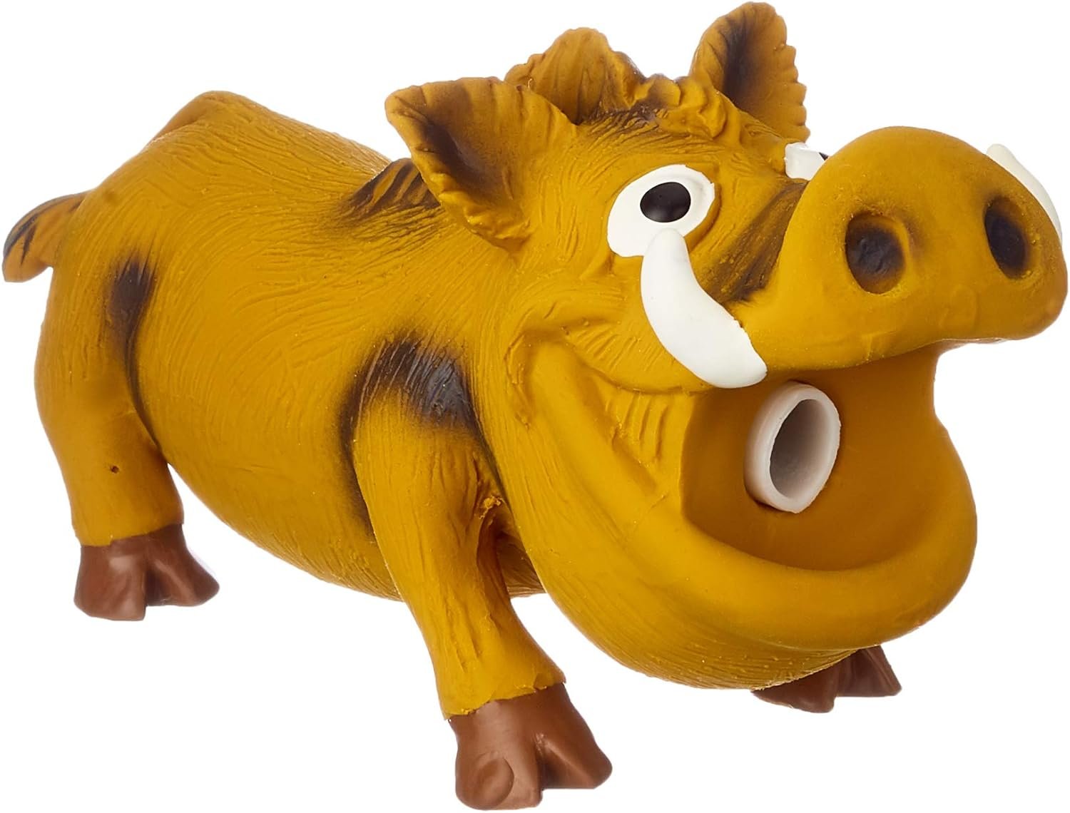 Schon beim Hinsehen vermitteln die lustigen Nobby-Latexfiguren Spaß am gemeinsamen Spiel. Ihr farbenfrohes Design regt die Fantasie an und die Figuren überraschen beim Drücken mit quietschenden Geräuschen. Das wissen vor allem neugierige, aktive Hunde zu schätzen. Dieses Latexspielzeug ist in Form von Ebern erhältlich