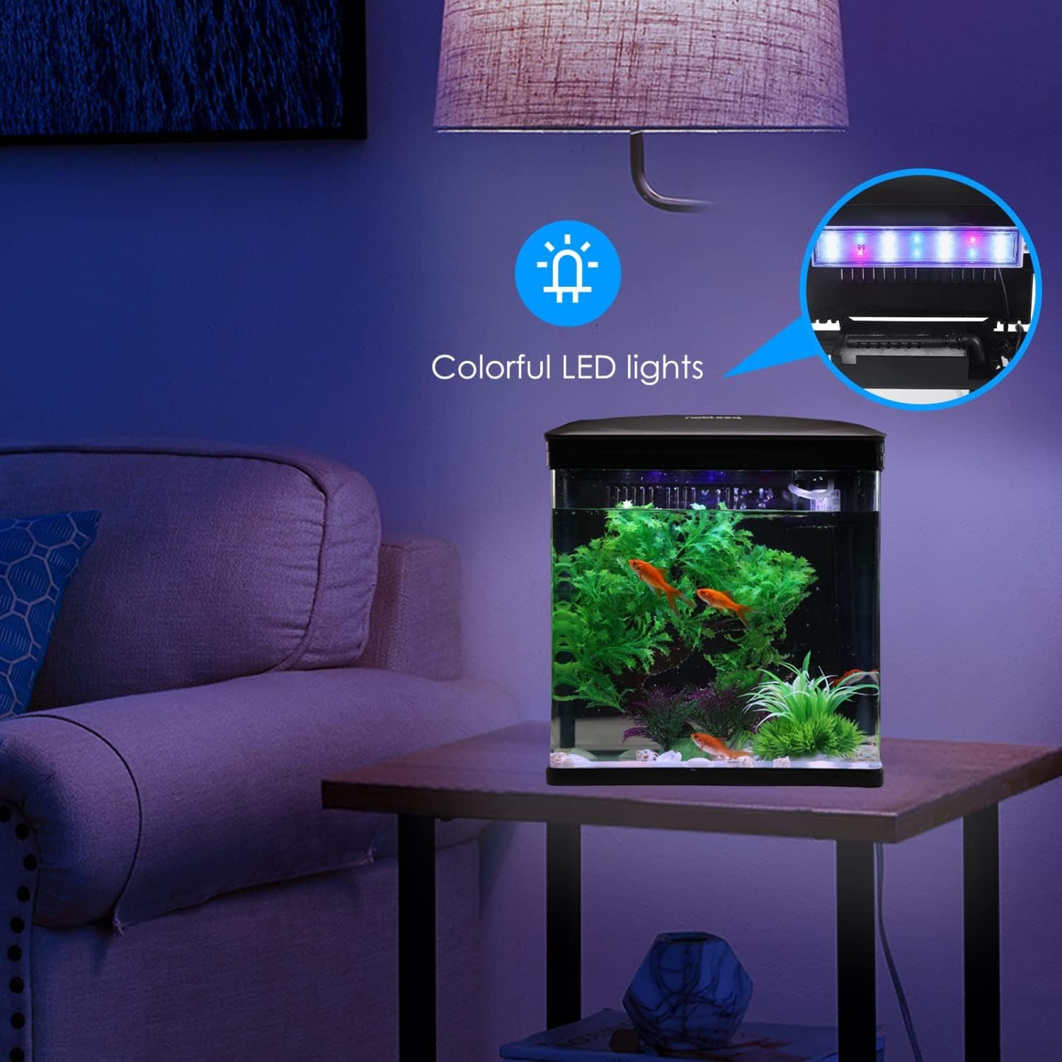 LED-Beleuchtung: Ein energiesparender 3,5-W-LED-Streifen mit einer Mischung aus weißem, blauem und rotem Licht, das natürliches Licht imitiert, die Farben der Fische schützt und das Wachstum von Pflanzen fördert
