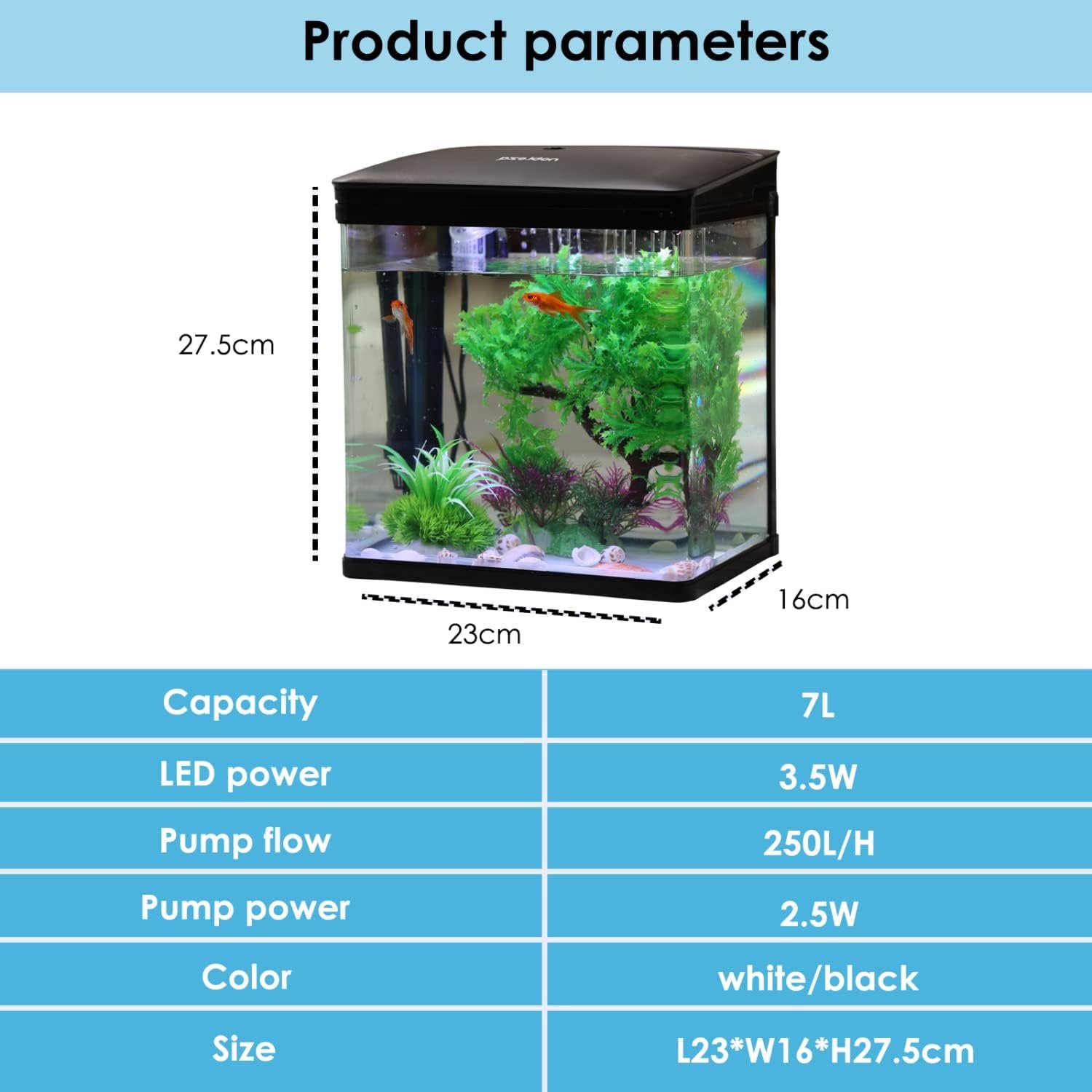 Lieferumfang: Aquarium mit Abdeckung, integrierte Wasserpumpe, biochemische Baumwolle, Nanowürfel, LED-Beleuchtung