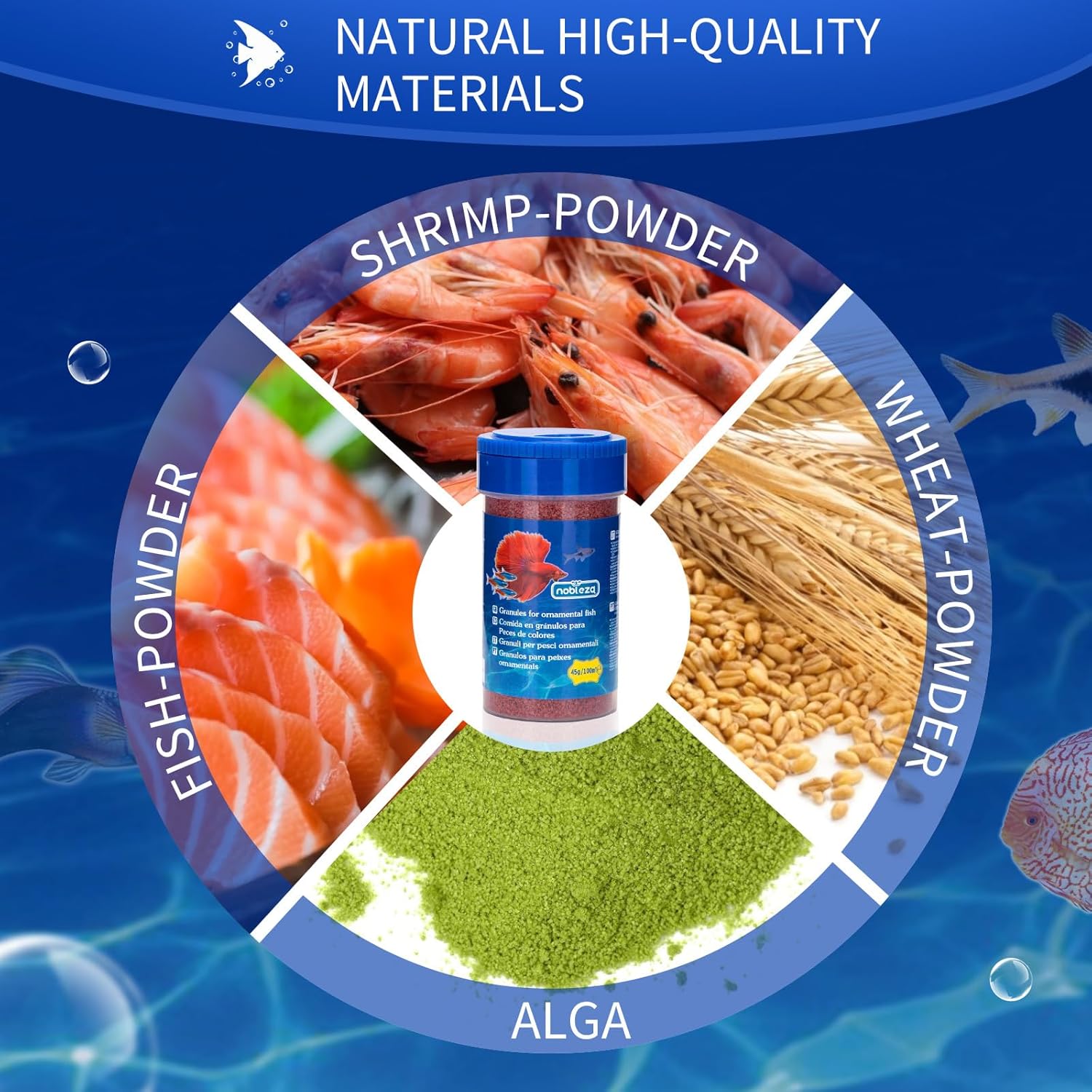 Nobleza – Hauptfutter für Alle Kleine Fische, Langsam Sinkendes Weichfischgranulat, 45g / 100 ml