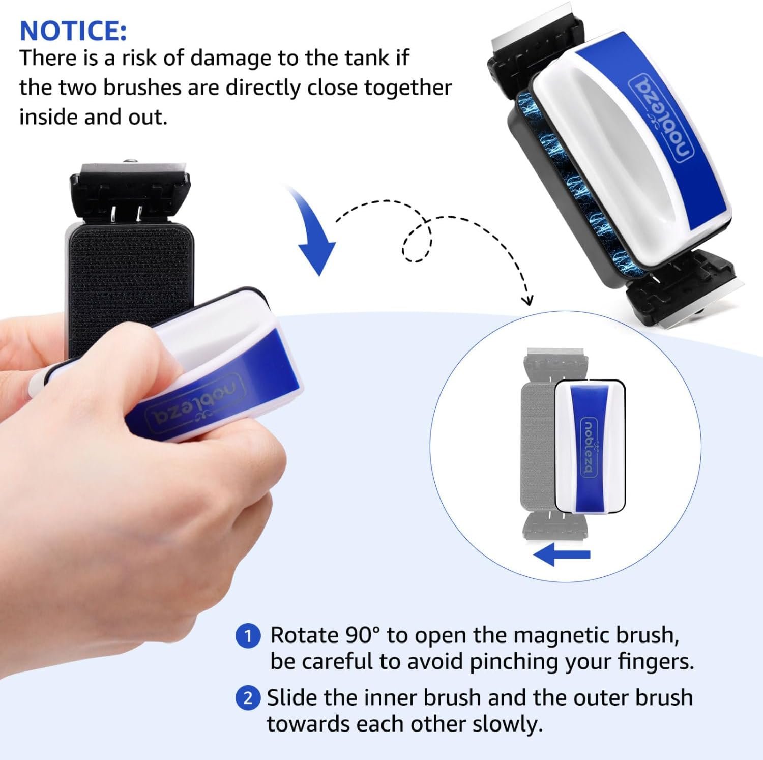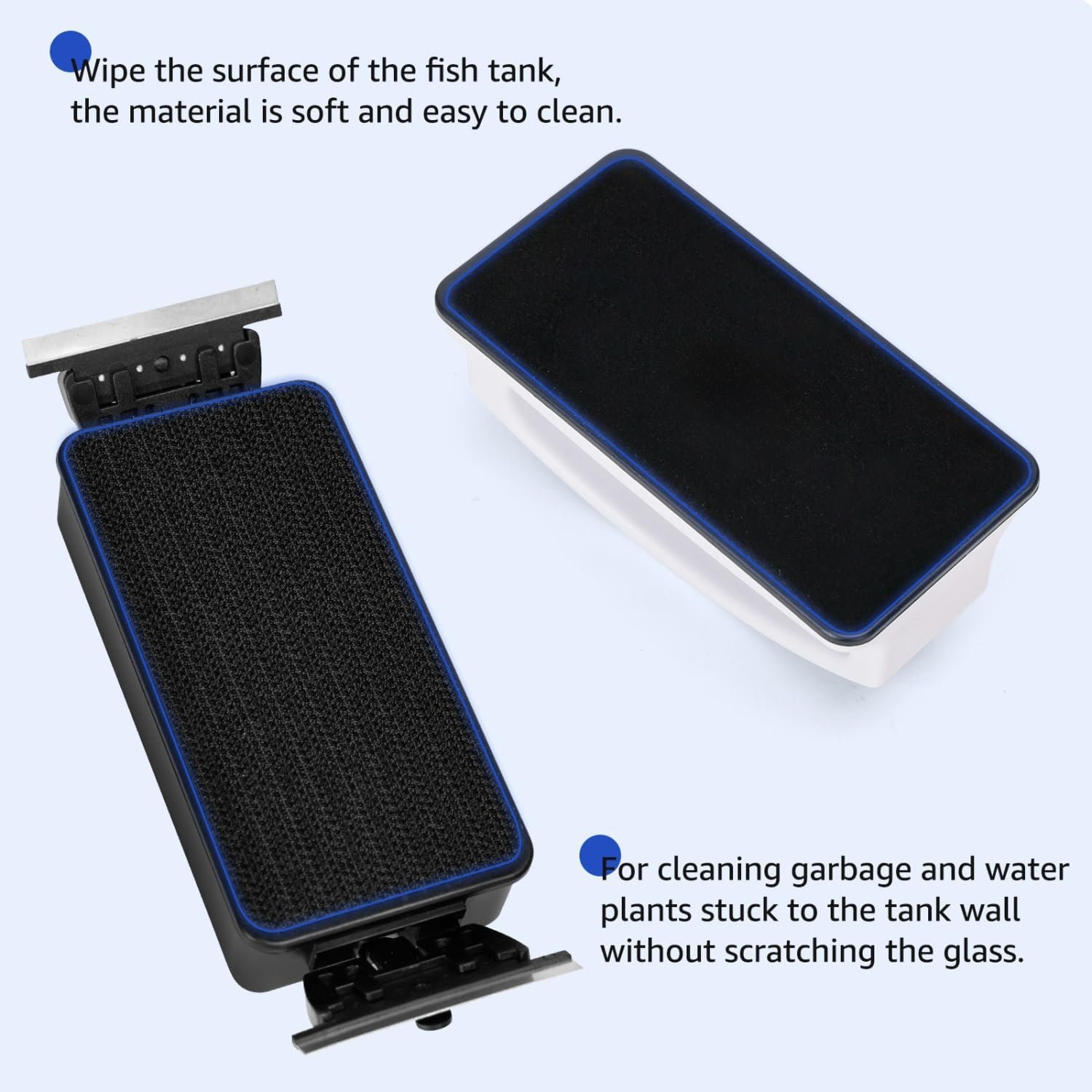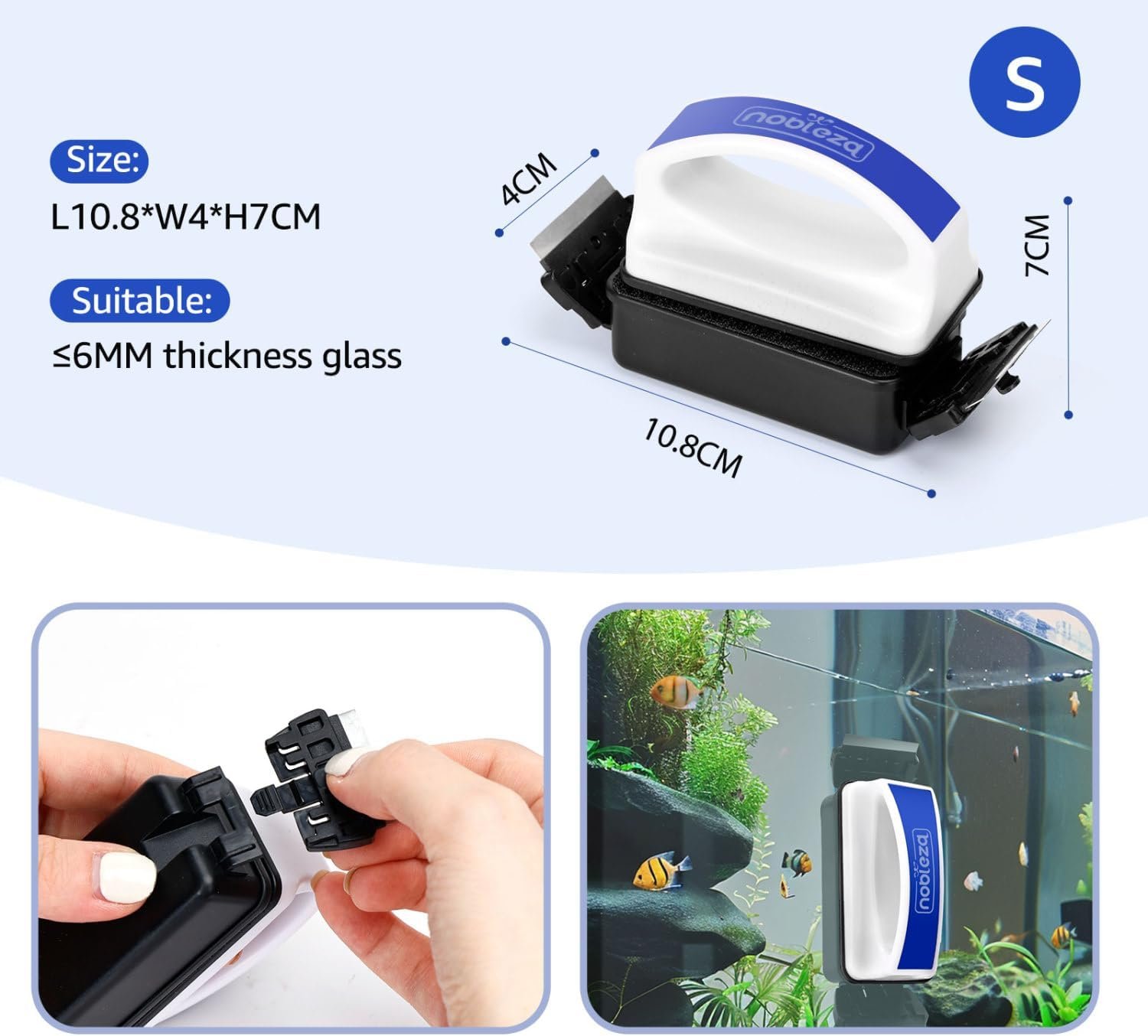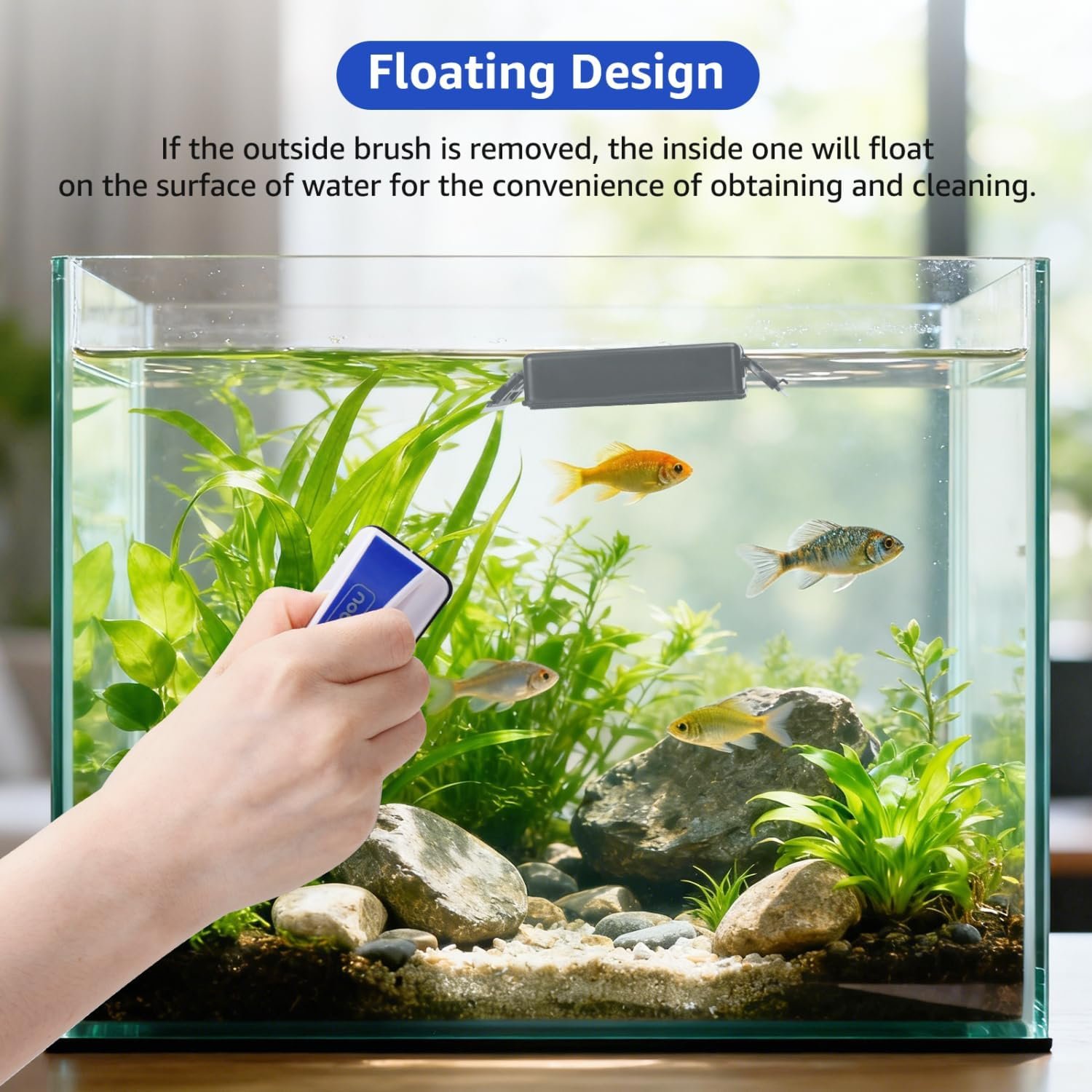 Extra starke Magnetkraft – Hochleistungsmagnet sorgt für festen und stabilen Halt auf bis zu 6 mm dickem Glas. Ermöglicht eine effiziente Reinigung ohne Verrutschen, ideal für Süß- und Meerwasseraquarien. Entfernt Grünalgen und Schmutz mit einer einzigen Bewegung. Doppelt abnehmbares Werkzeug – Enthält zwei abnehmbare Klingen. Entwickelt für eine gründliche Reinigung ohne Kratzer auf dem Glas, um die Transparenz und das makellose Aussehen Ihres Aquariums zu erhalten. Schwimmendes Design und trockene Handhabung – Der innere Reinigungskopf schwimmt beim Trennen automatisch an die Oberfläche, verhindert ein Absinken und erleichtert das Entfernen, ohne dass Ihre Hände nass werden. Komfortable Reinigung, die Fische und Wasserpflanzen nicht stört. Kratzschutz mit weichem Filz – Die Polsterung aus hochdichtem Filz auf der Außenseite schützt die Scheibe beim Reinigen vor Kratzern. Sicherheitsmaterial, nicht scheuernd, sorgt für eine kristallklare, unbeschädigte Oberfläche. Ergonomischer Anti-Rutsch-Griff – Bequemer Griff mit rutschfester Oberfläche für sicheren Halt, auch mit nassen Händen. Ermöglicht präzise Bewegungen in alle Richtungen.