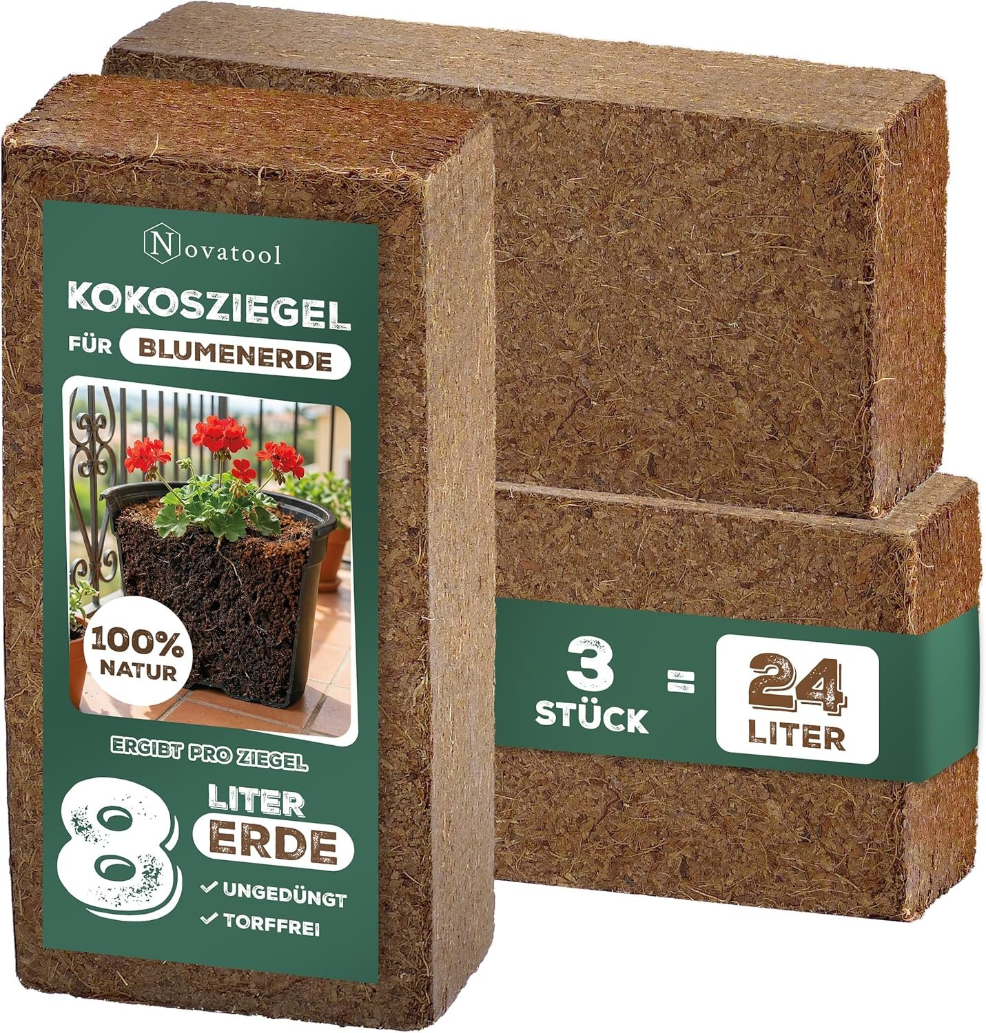 Lieferumfang: Sie erhalten 3 x Bricks aus natürlicher Kokosfaser von Novatool in der Farbe Braun mit ca. 650 g Reptilienstreu.