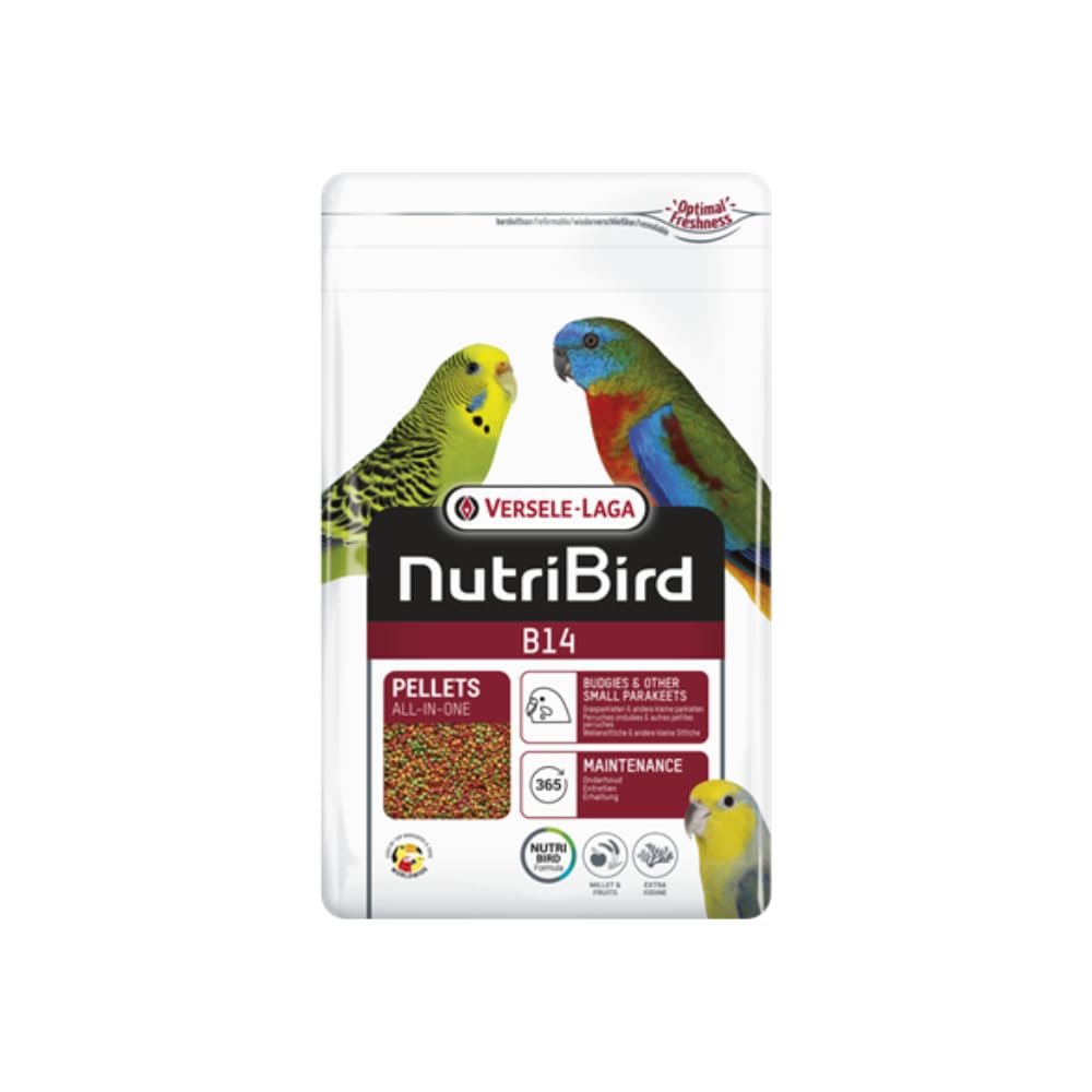 Produktbeschreibung: Versele-Laga B14 ist ein erstklassiges Konservierungsfutter für Wellensittiche und Kleinsittiche. Die wissenschaftlich fundierte Zusammensetzung könnte alle notwendigen Nährstoffe liefern, die Ihre Vögel benötigen. Die extrudierten Pellets sind vollständig verzehrbar und könnten ein selektives Fressverhalten verhindern. Angereichert mit 40 % Hirse und ausgewählten Getreidesorten sowie Früchten könnte dieses Lebensmittel die Darmflora unterstützen und vor Darmerkrankungen schützen. Opti Digest mit natürlichen Tonmineralien und Präbiotika könnte für eine gesunde Verdauung sorgen, während Opti Feather alle Nährstoffe für ein schönes Gefieder enthalten könnte. Opti Calcium kann ein optimales Calcium-Phosphor-Verhältnis für gesunde Knochen bieten. Dieses von Tierärzten empfohlene und weltweit von Vogelparks und Spitzenzüchtern verwendete Futter könnte eine ausgezeichnete Wahl für die tägliche Ernährung Ihrer Vögel sein. Allgemeine Informationen für Erwachsene, Pflegeinhaltsstoffe/Wirkstoffe. Zusammensetzung: Samen (Hirse 40 %), Getreide, Gemüse, pflanzliche Proteinextrakte, pflanzliche Nebenerzeugnisse, Mineralien, Öle und Fette, Früchte (Apfel 5 %*), Zucker, Algen (1 %), MOS, Yucca *getrocknetes Obst und Gemüse, Prozentanteil entspricht dem Anteil vor dem Trocknen. Analytische Bestandteile Protein 14 %, Fettgehalt 8 %, Rohöl. 5 % Wert 7,5 %, Calcium 0,9 %, Phosphor 0,6 %, Methionin 0,35 %, Lysin 0,75 %, Threonin 0,5 %, Tryptophan 0,15 %, Cystin 0,25 % Zusatzstoffe/kg Nahrungsergänzungsmittel Vitamin A 8000 IE, β-Carotin 4,8 mg, Vitamin D3. 1650 IE, Vitamin E 90 mg, Vitamin B1 8 mg, Vitamin B2 17,5 mg, Calcium-D-Pantothenat 22 mg, Vitamin B6 6,5 mg, Vitamin B12 0,03 mg, Vitamin C 55 mg, Niacin 90 mg, Folsäure 1,65 mg, Biotin 0,2. 9 mg, ChOlive-Chlorid 770 mg, 3b202 (Jod) 2,3 mg, 3b405 (Kupfer) 11 mg, 3b503 (Mangan) 110 mg, 3b605 (Zink) 105 mg, 3b802 (Selen) 0,11 mg, 3b811 (Organ). 0,11 mg. Technologische Zusatzstoffe, Antioxidantien: mit Tocopherolen, Konservierungsmitteln, Bentonit, sensorischen Zusatzstoffen, Farbstoffen, Gebrauchsanweisung. Um Ihren Vogel schrittweise auf dieses neue Futter umzustellen, gehen Sie bitte wie folgt vor: Mischen Sie immer mehr des neuen Futters unter das bisherige Futter, bis Ihr Vogel vollständig auf das neue Futter umgestellt ist.