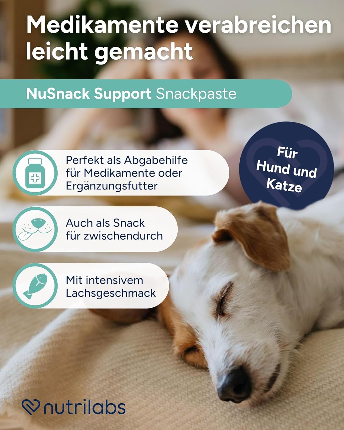 Einfache Medikation – Unser NuSnack ist der perfekte Trojaner für Hunde und Katzen. Mischen Sie einfach Medikamente unter die Leckerlis und schon nimmt Ihr Liebling diese stressfrei und genussvoll zu sich – ohne Widerstand.