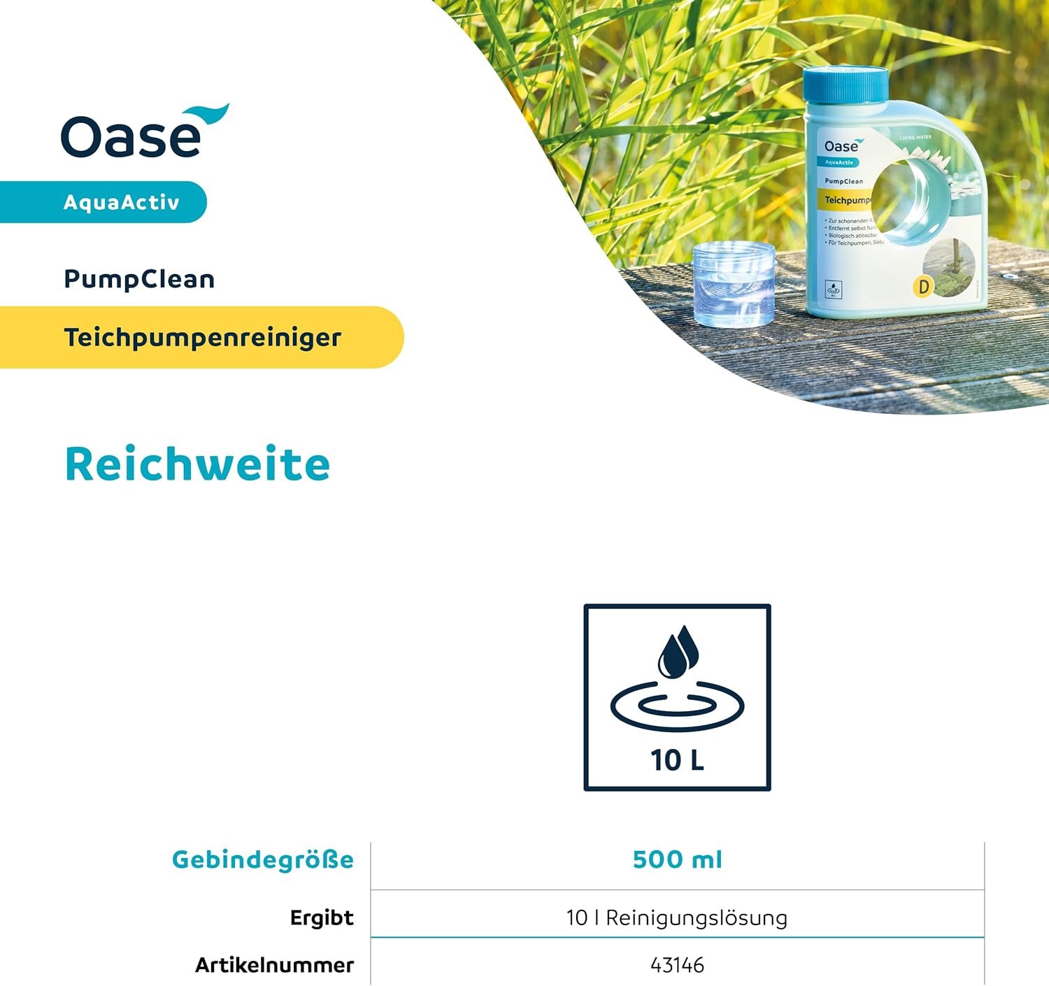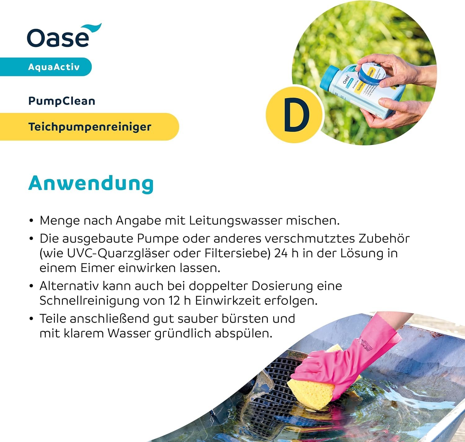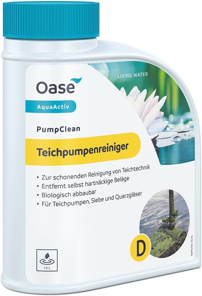 Saubere Teichtechnik: Effektiver Oase AquaActiv PumpClean Teichpumpenreiniger (500 ml ergibt 10 l Entkalkerlösung) mit Dosierhilfe reinigt und reinigt Teichpumpen, Siebe und UVC-Quarzgläser schonend