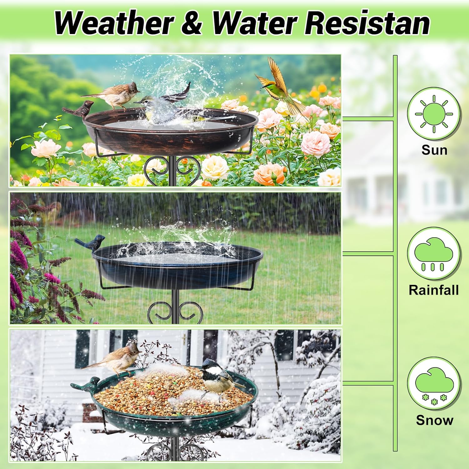Langlebiges Vogelbad aus Metall: Dieses Garten-Vogelbad besteht aus hochwertigem Metall mit einer Schutzbeschichtung, um sicherzustellen, dass Ihr Vogelbad langlebig ist und nicht rostet. Die verdickten Stangen und stabilen Pfähle mit fünf Krallen halten das Gerät beim Einsatz im Freien im Gleichgewicht und stabil