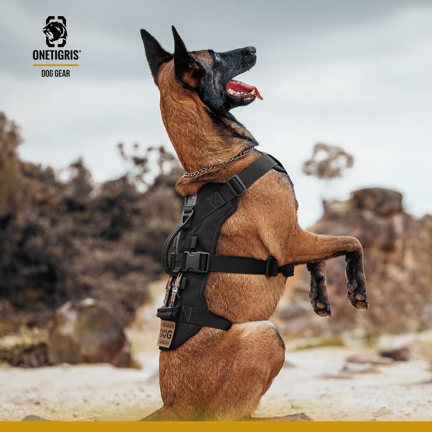 No-Escape-Design: Brustgeschirr Y-förmiges Bruststück mit 3 Riemen um die vordere Brust und den Bauch für einen festen und sicheren Sitz, mit 2 Griffen zur Unterstützung der Beweglichkeit und Kontrolle des Hundes und einem Patchfeld für Patches