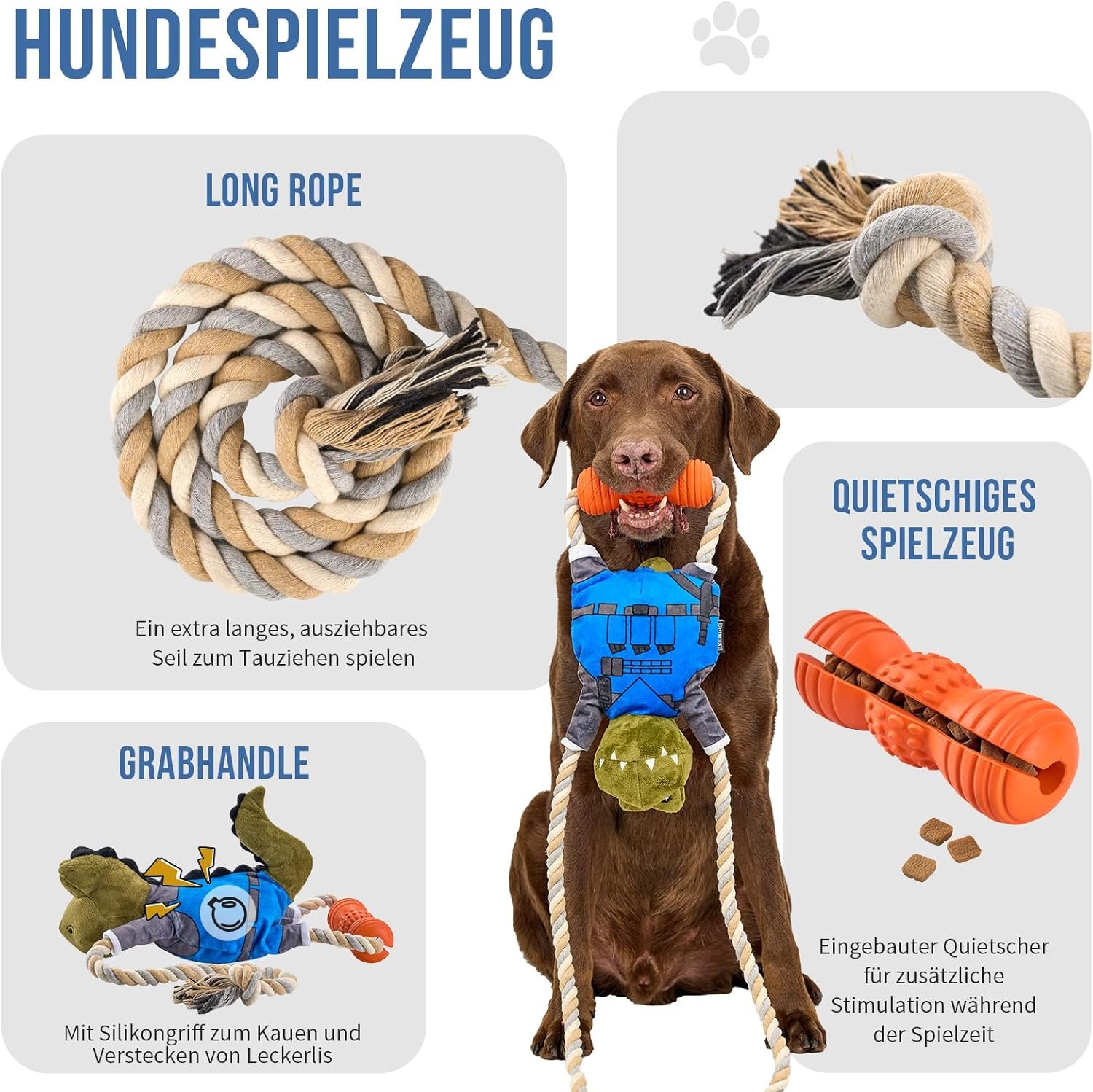 【Spielseil für Hunde】: Enthält einen Silikongriff mit einem extra langen ausziehbaren Seil zum Tauziehen. Der Griff kann auch entfernt werden, um es als kleineres Kauspielzeug zu verwenden.