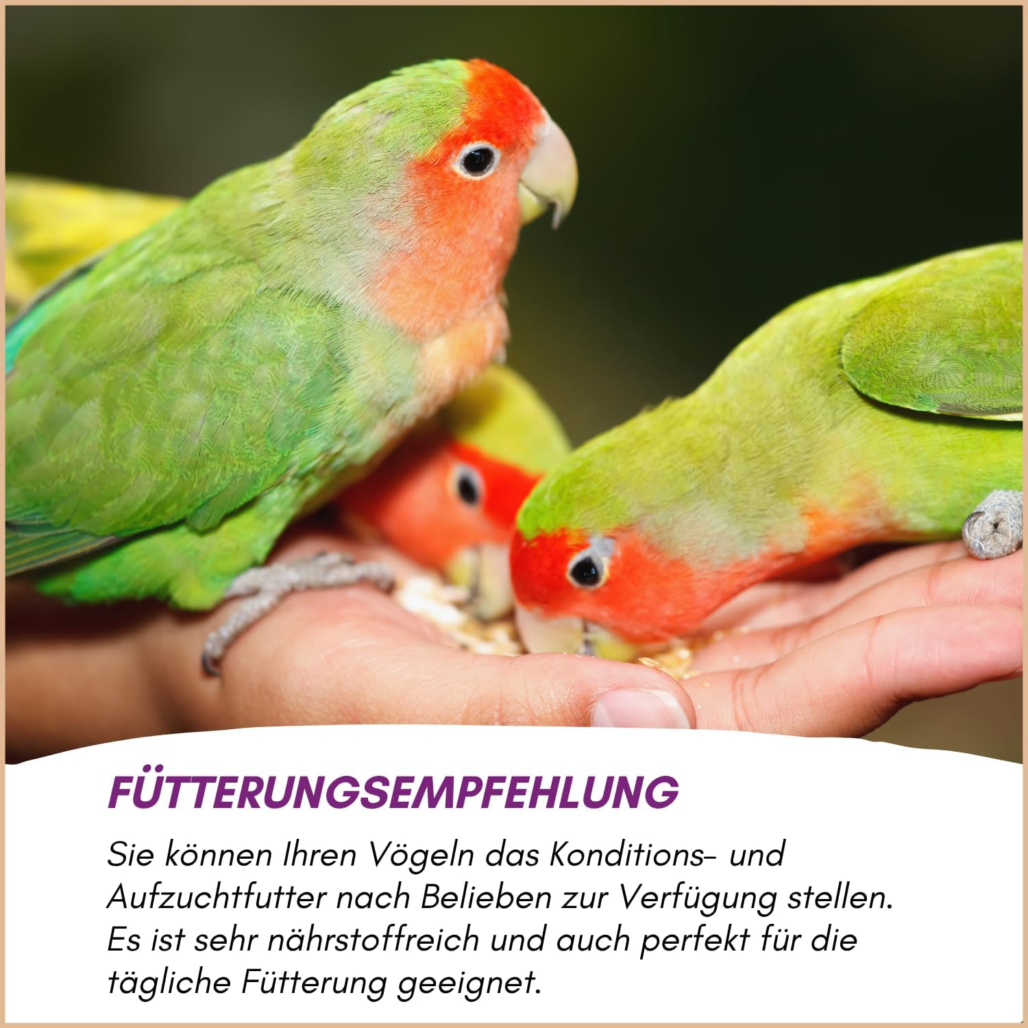 Premium Konditions- und Aufzuchtfutter für Ziervögel: Hochwertiges Vogelfutter für alle Ziervogelarten – ideal als Zuchtfutter, Jungvogelfutter und Futter für Zuchtfutter. Unterstützt die Vitalität, Gefiederqualität und Konditionierung während der Zucht, des Wachstums und der Mauser.
