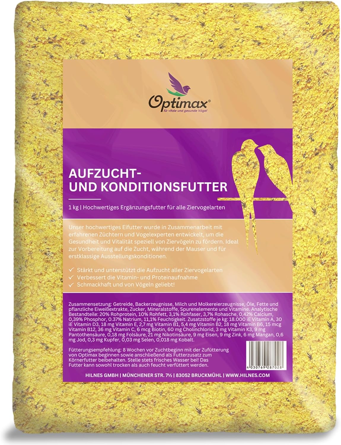 Optimax ist ein hochwertiges Ergänzungsfutter zur Stärkung und Aufzucht aller Ziervogelarten. Ergänzen Sie Ihr Getreidefutter mit Optimax und steigern Sie so die Vitamin- und Proteinaufnahme Ihrer Vögel