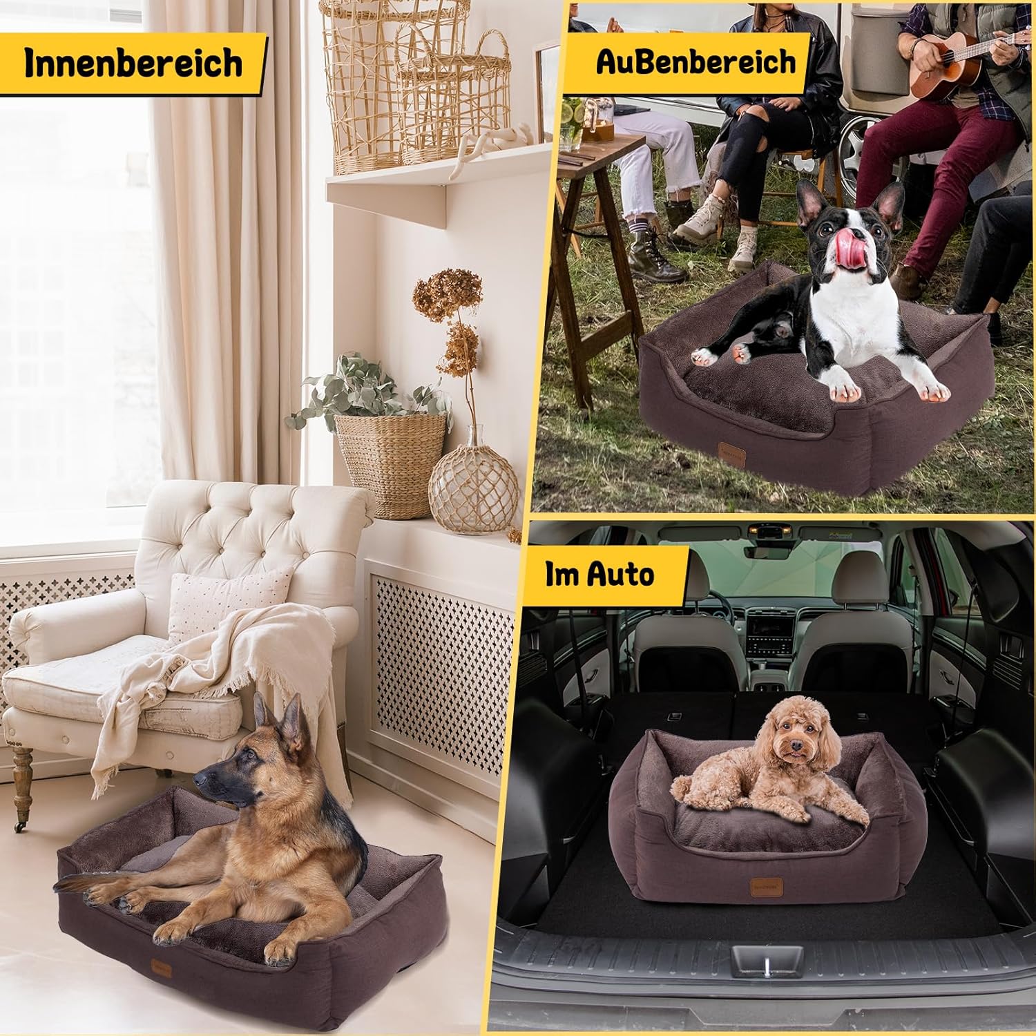 STILVOLLE FARBEN & VIELSEITIGE EINSATZMÖGLICHKEITEN: Das Hundebett ist in den Farben Tiefgrau, Hellgrau, Dunkelbraun und Khaki erhältlich und passt harmonisch zu jedem Wohnstil. Verschiedene Größen (S-XL) bieten optimalen Komfort für kleine bis mittelgroße Hunde. Ideal für zu Hause oder im Auto, Ihr Hund kann überall sicher und bequem entspannen