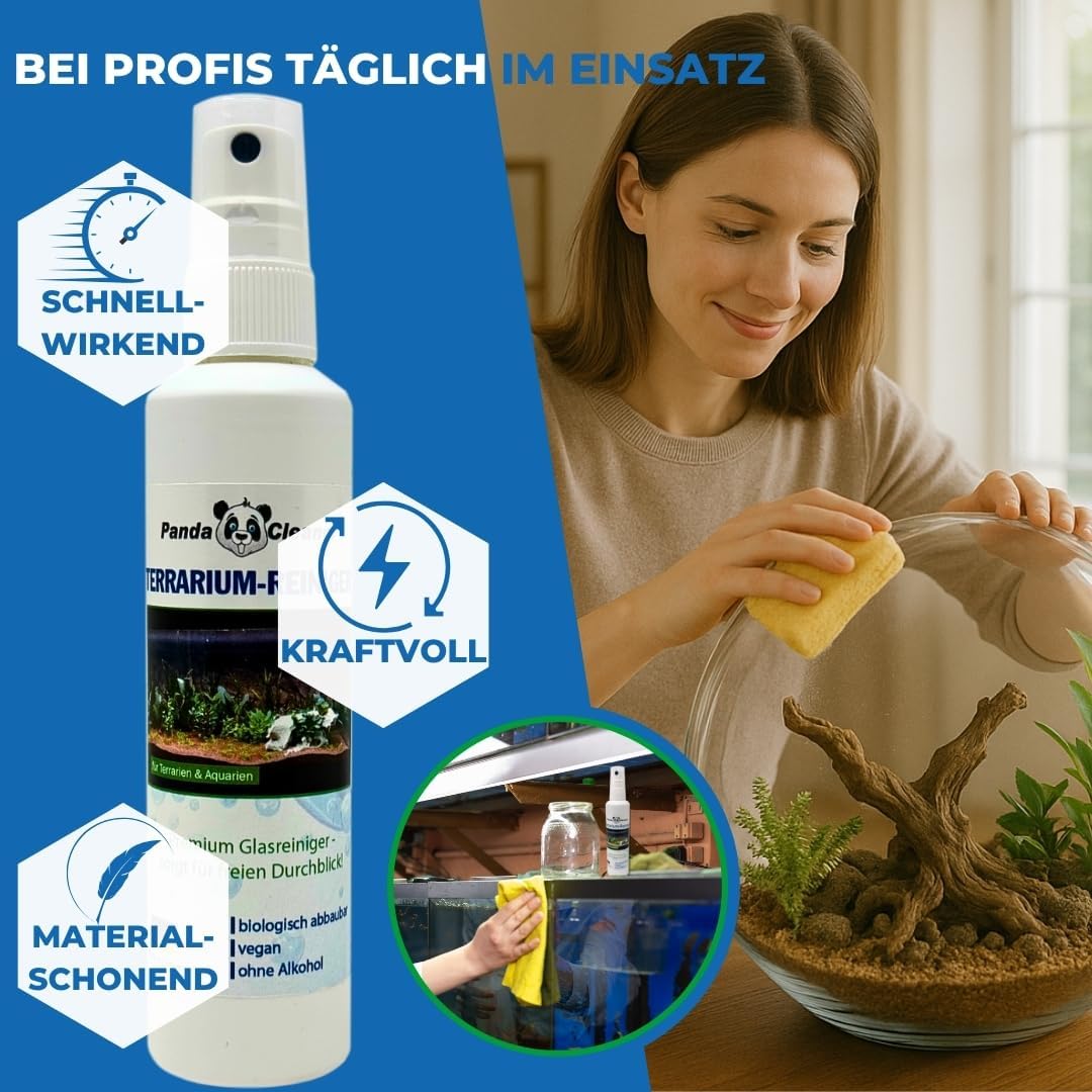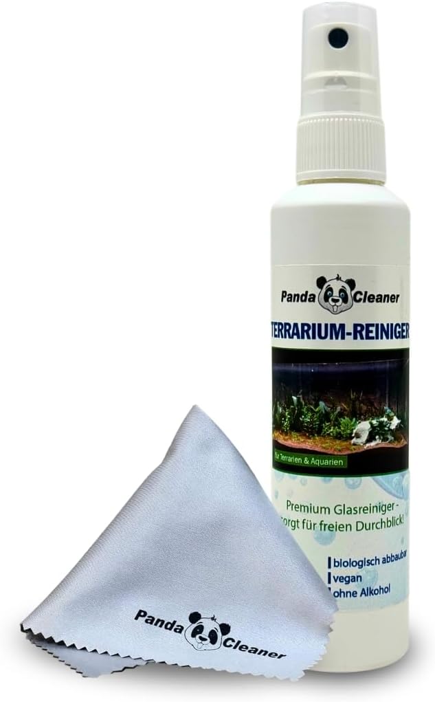 HOHE REINIGUNGSKRAFT: Mit dem konzentrierten Pandacleaner Terrarienglasreiniger entfernen Sie einfach und unkompliziert Fingerabdrücke, Staub, Schmutz sowie Ölfilme und andere Rückstände streifenfrei.