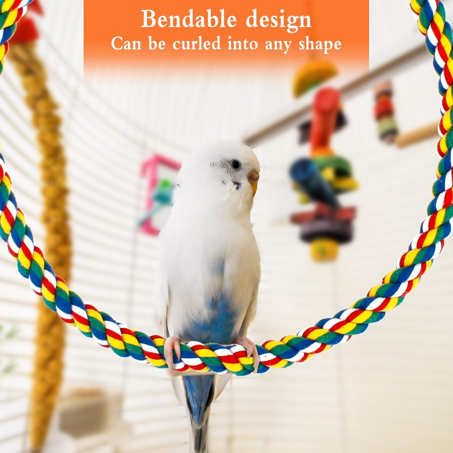 — Das Sitzstangenseil für den Vogelkäfig hat ein helles Aussehen, kann die Aufmerksamkeit von Vögeln perfekt auf sich ziehen und den Haustierkäfig perfekt dekorieren.