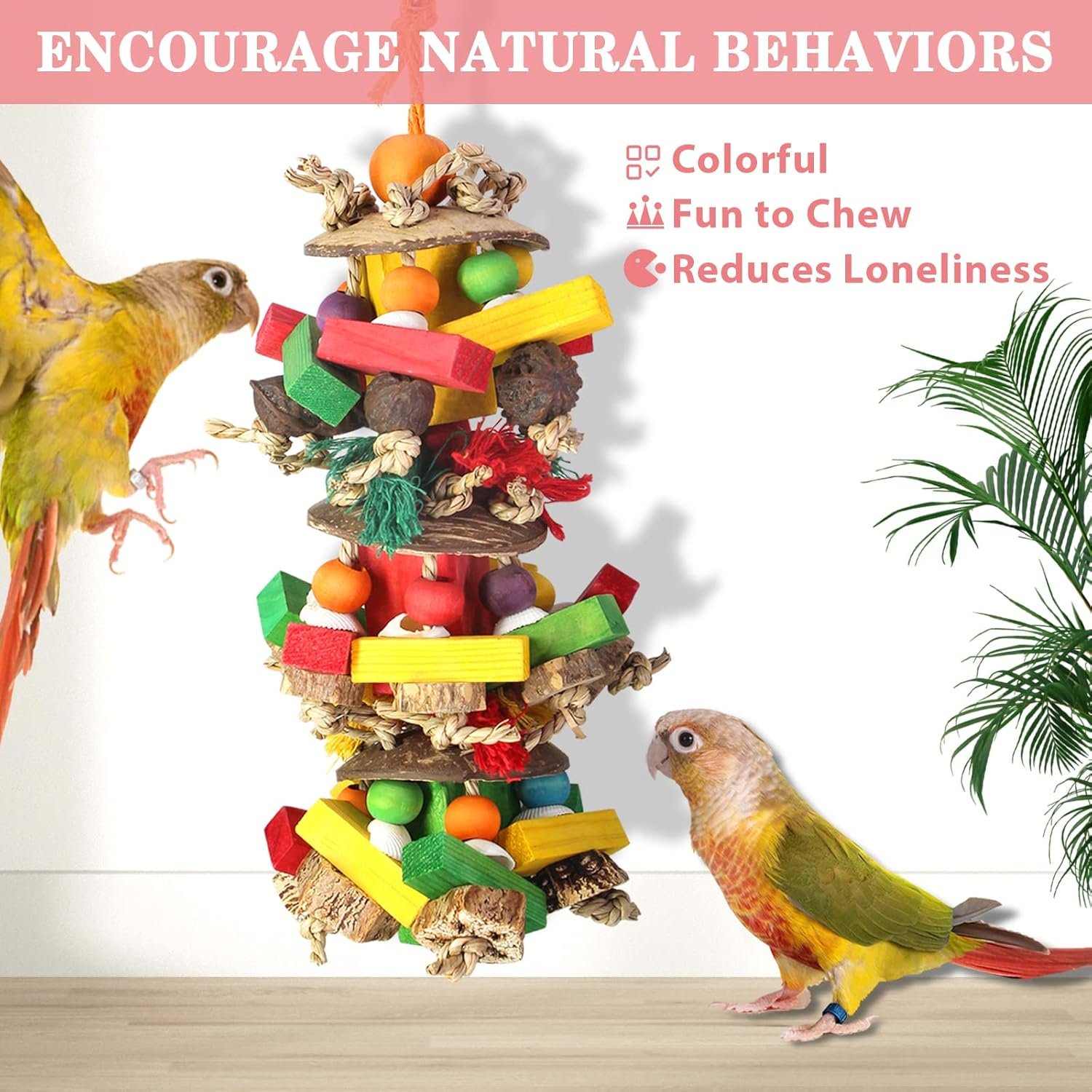 Bleiben Sie gesund: Unsere Kauspielzeuge für Nymphensittiche enthalten farbige Holzklötze und anderes Zubehör in verschiedenen Formen, um Ihre Papageien zum Kauen zu animieren und Ihren Federfreunden dabei zu helfen, ihre Schnäbel zu konditionieren. Der Schnabel eines Papageis wächst ständig. Ein zu langer Schnabel kann seine Nahrungsaufnahmefähigkeit beeinträchtigen und seiner Gesundheit schaden