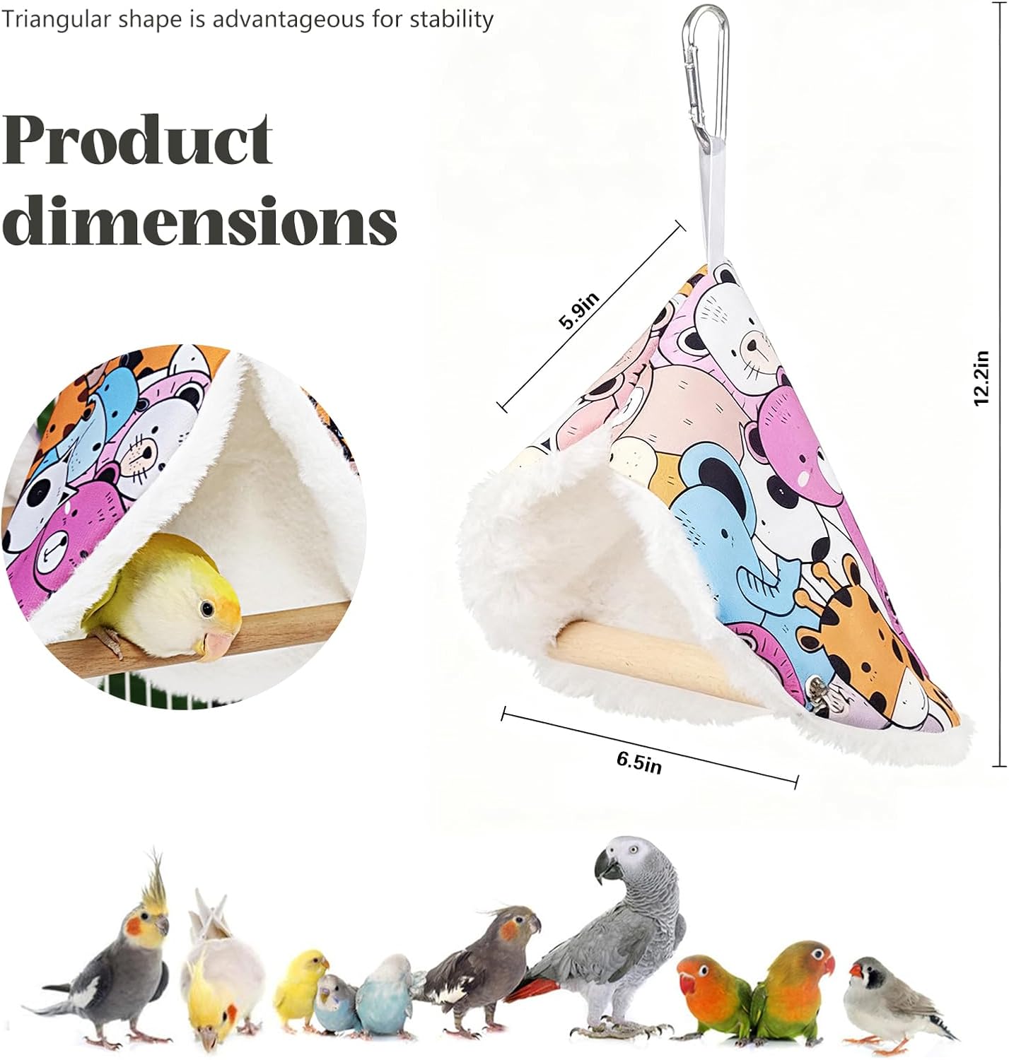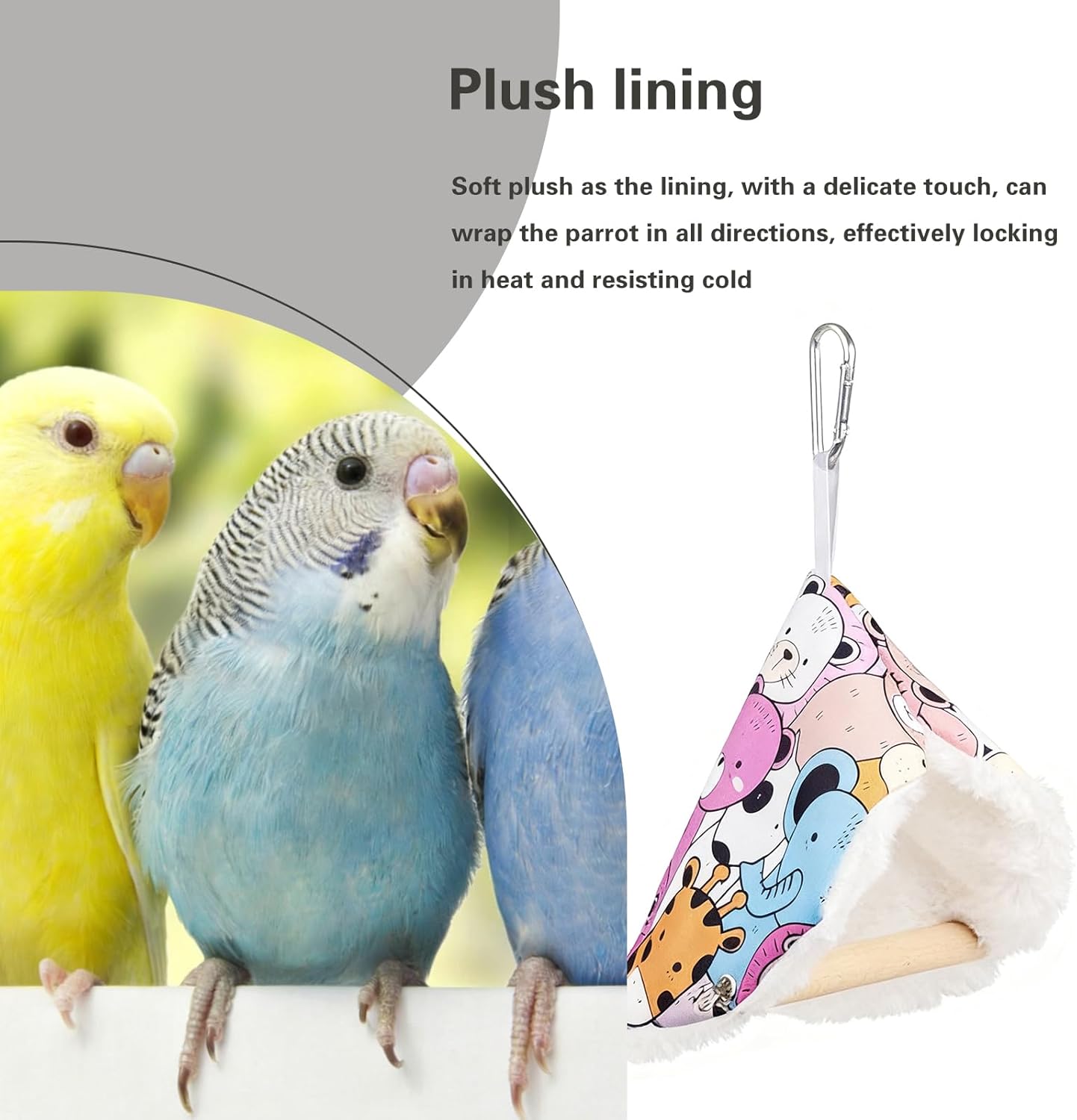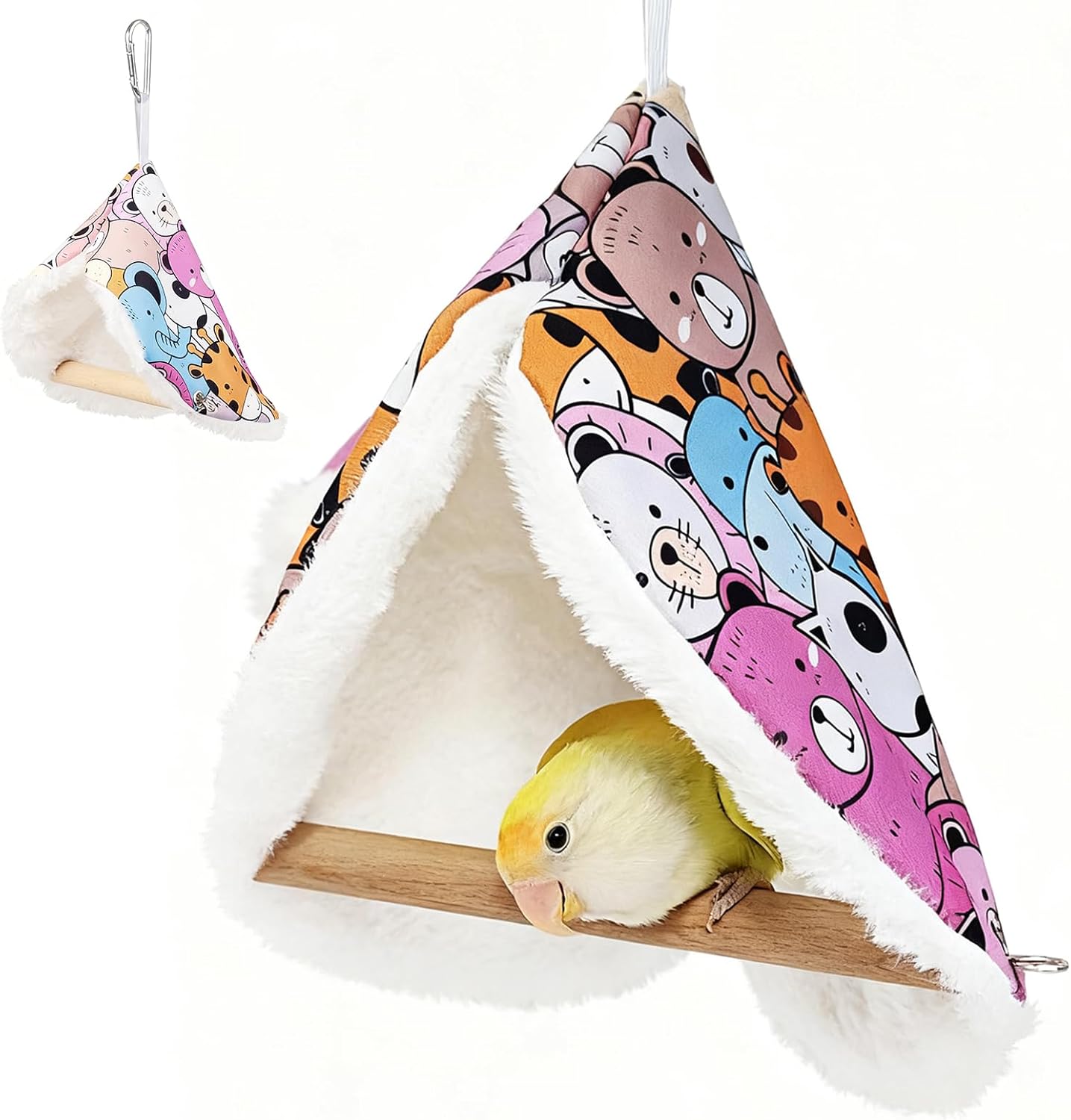 Product Summary: Kakveiai Parrot Plush Triangle Hammock, Pet Bird Plush Hammock, Bird Cage Accessories, Bird Toy, Natural Wood Hammock for Cockatiels, Finches, Small Parakeets and Macaws