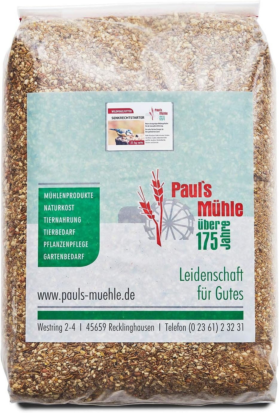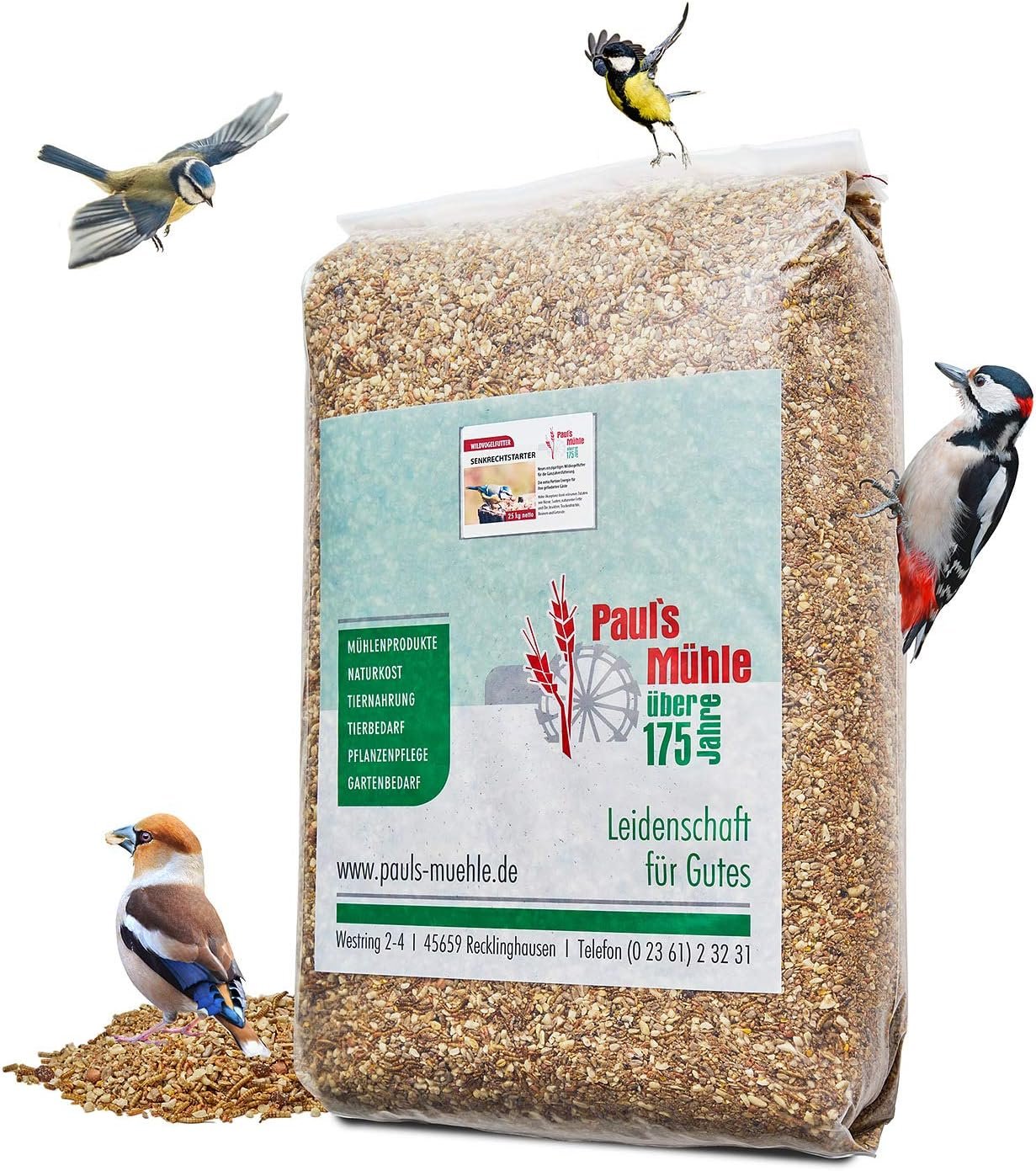 Das Premium Wildvogelfutter von Paul’s Mühle ist ein nahrhafter Leckerbissen für Ihre Vögel, der sie das ganze Jahr über optimal mit allen notwendigen Nährstoffen versorgt. So können Ihre gefiederten Freunde ihre Energiereserven auffüllen, viele vitale Jungvögel aufziehen, sich auf den Winter vorbereiten und diesen optimal versorgt überstehen