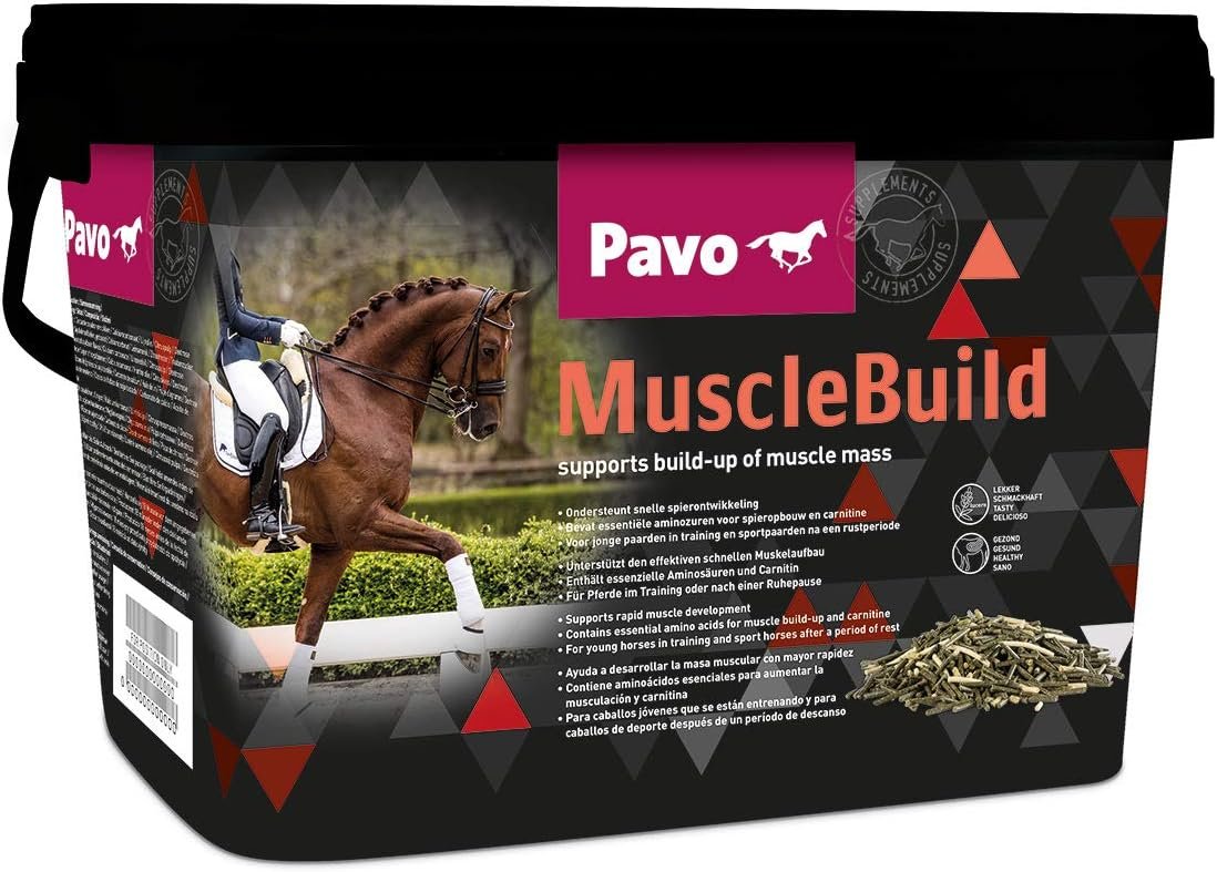Unterstützt den schnellen Muskelaufbau: Pavo MuscleBuild enthält Molkenpulver und essentielle Aminosäuren, die zum effizienten Aufbau von Muskelmasse bei Pferden beitragen.