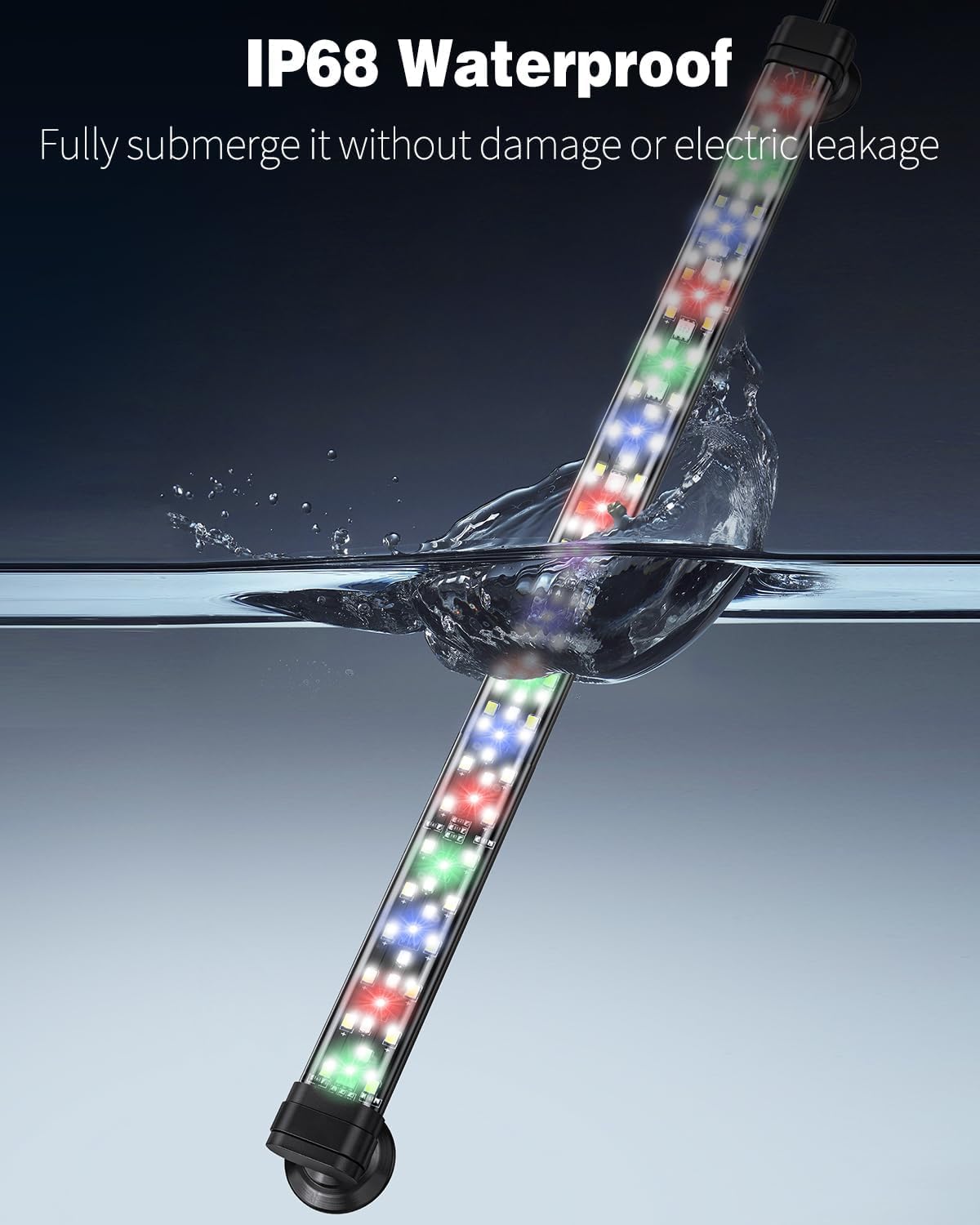 Langlebiges Design: Das durchsichtige Panel der Aquarienleuchte ist streng mit Silikon abgedichtet, um Feuchtigkeit oder Tropfen fernzuhalten. Das solide Aluminiumgehäuse kann die Wärmeableitung beschleunigen. Die langlebigen Leuchtmittel und der ETL-zertifizierte Adapter sorgen für Sicherheit und kontinuierliche Beleuchtung.