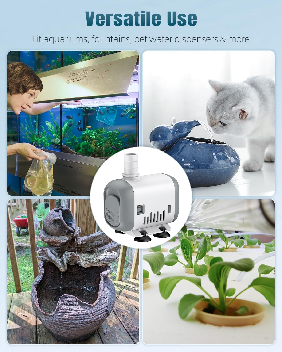 Hohe Effizienz: Leistung: 8 W; Maximale Durchflussrate: 130 GPH (500 LPH); Maximale Hubhöhe: 79 cm. Bietet eine kraftvolle, gleichmäßige Wasserzirkulation, um Ihre Wasserwelt zu beleben und ein lebendiges, gesundes Unterwasserleben zu fördern