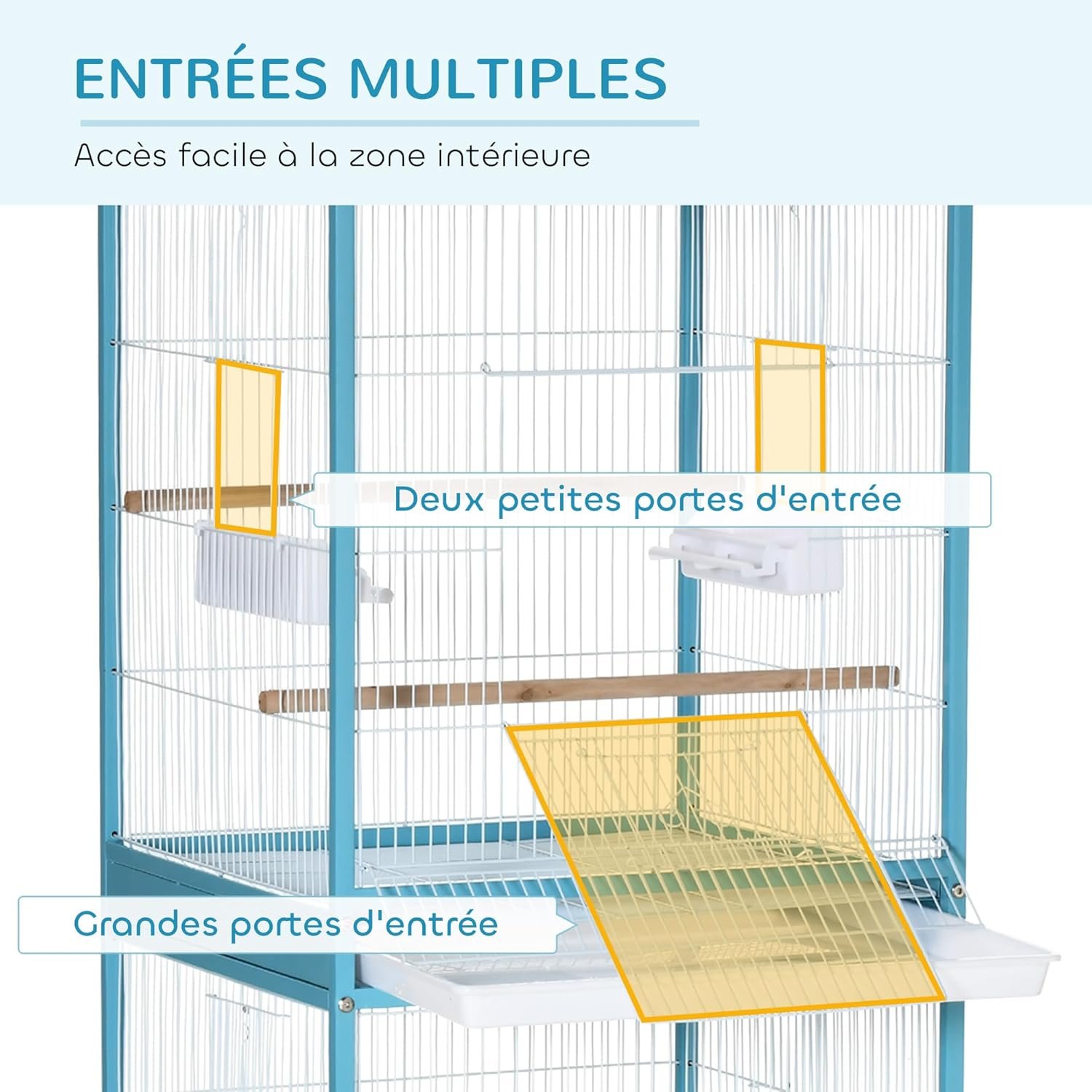 4 Türen: Erleichtern Sie sich das Leben mit unserem Vogelkäfig aus Stahl mit vier praktischen Türen! Eine große Vordertür, eine kleine Vordertür und zwei Seitentüren ermöglichen einen schnellen Zugriff auf das Futter und das Innere des Käfigs