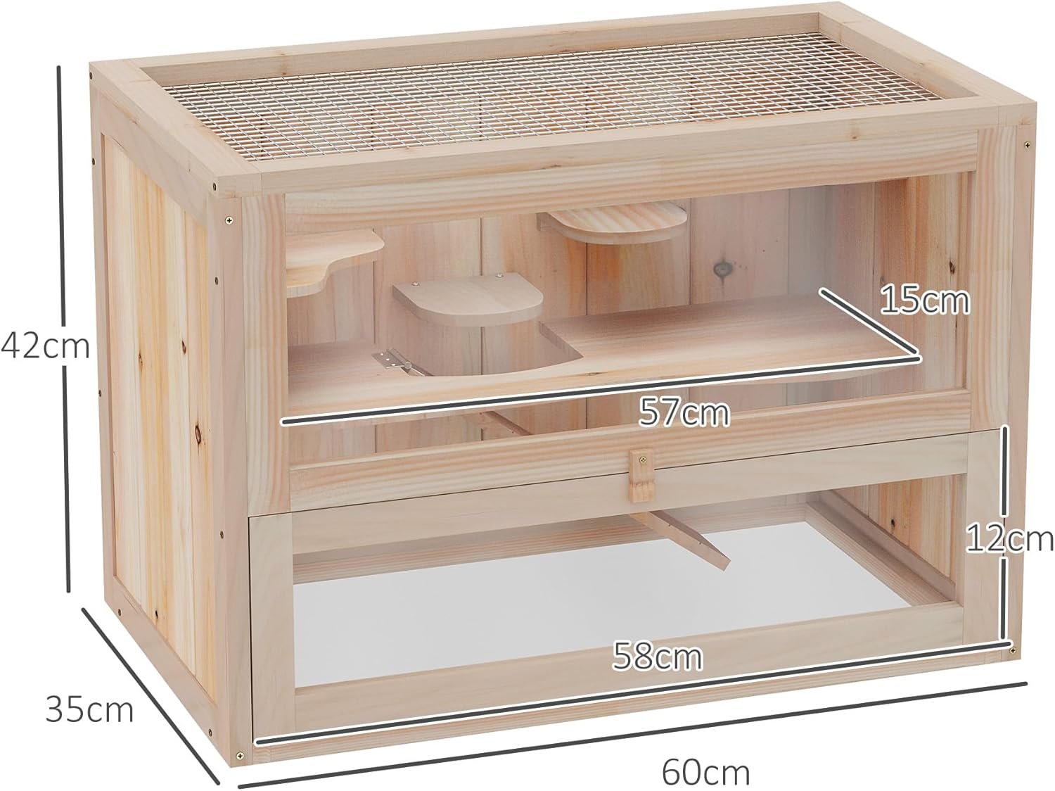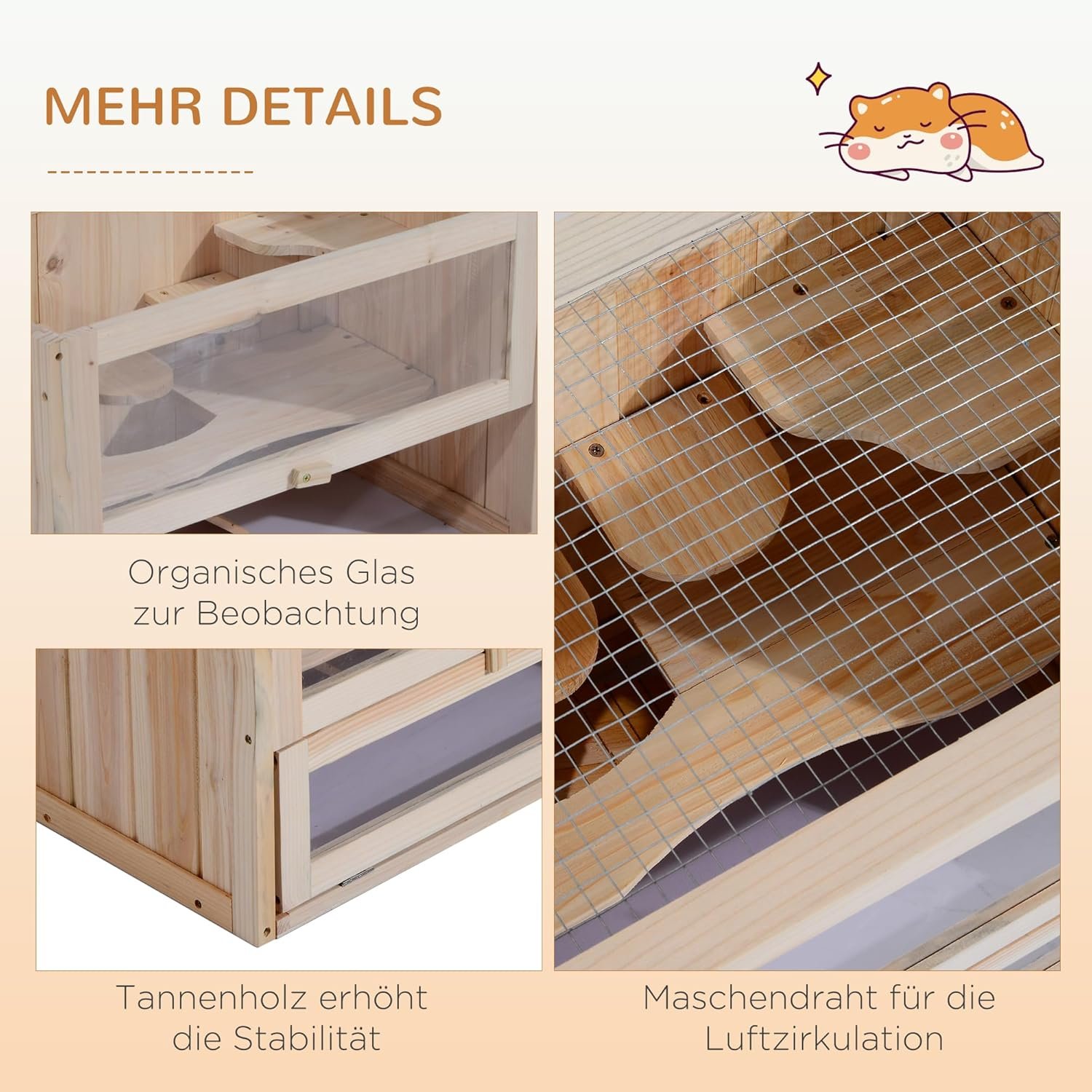 Produktabmessungen: Die Gesamtgröße des Nagetierkäfigs beträgt 60 L x 35 B x 42 H cm.