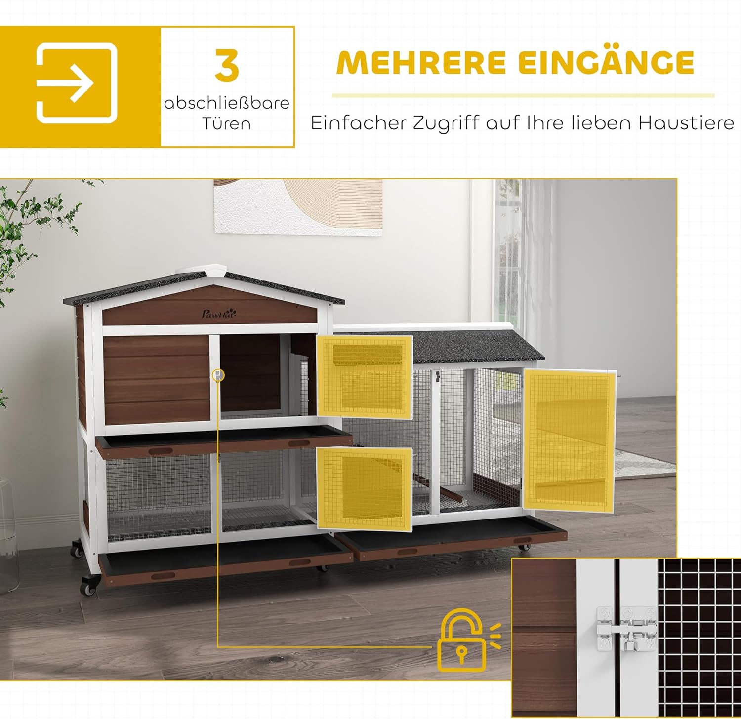 Praktisches Design: Dieser Kleintierkäfig verfügt über mehrere Türen und eine zusätzliche Rampe, damit Ihr Zwergkaninchen problemlos hinein- und hinausgehen kann. Integrierte Türen ermöglichen einen einfachen Zugang zu Ihren Tieren und erleichtern die Pflege