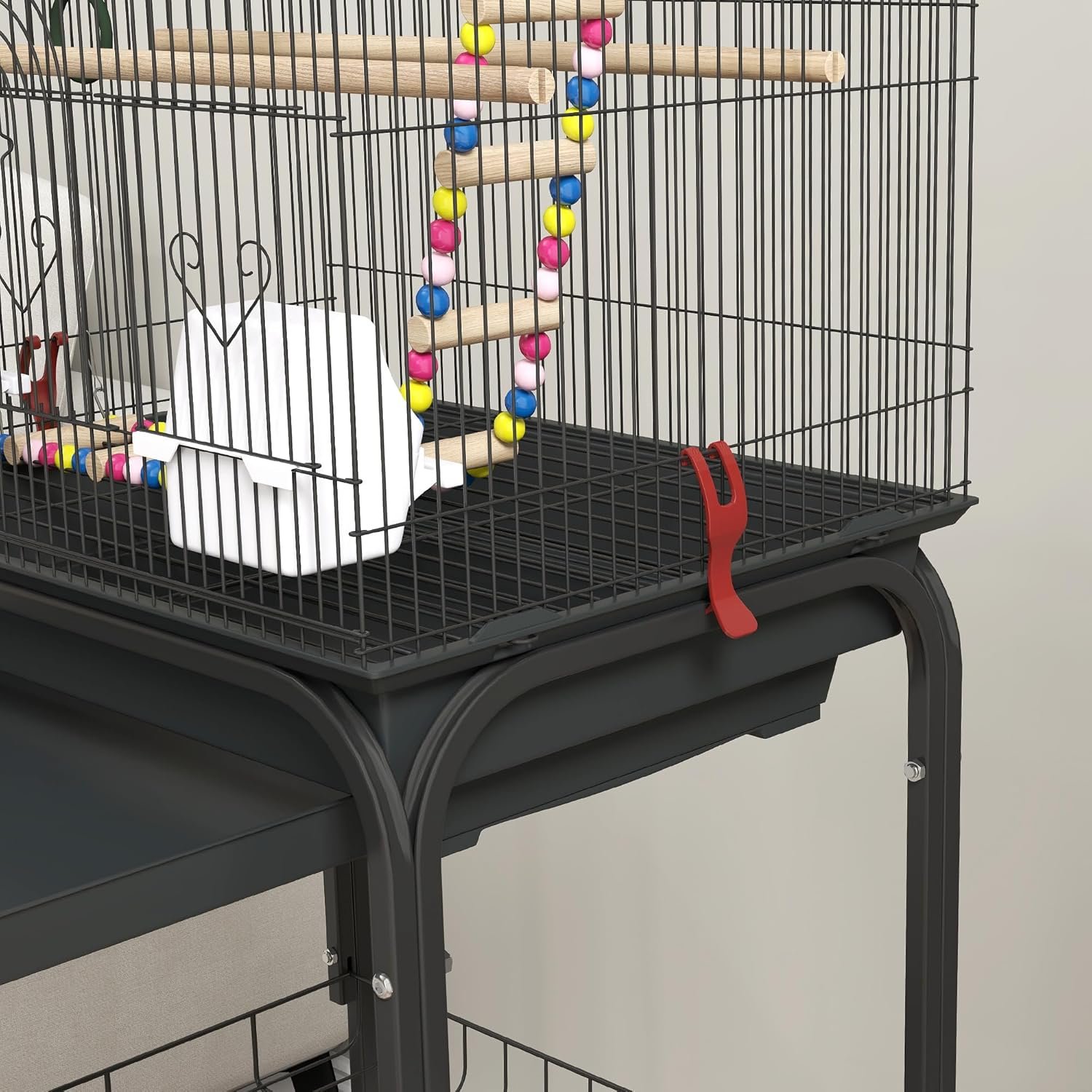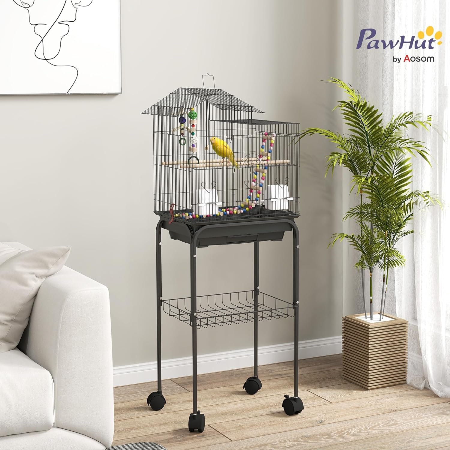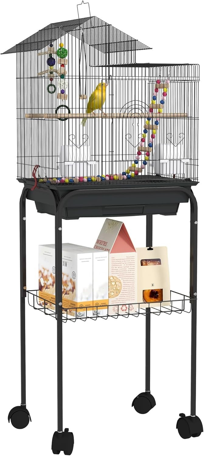 Robust und langlebig: Dieses Vogelständer-Set besteht aus hochwertigem Stahl und langlebigem Kunststoff und bietet jahrelangen Gebrauch und Freude. Dieser Vogelkäfig für den Innenbereich verfügt über einen Griff an der Oberseite für den einfachen Transport. Dazu gehören ein Rollständer und ein Regal, um den Zugang zum Futter Ihres Haustiers und das Bewegen des Käfigs zu erleichtern.