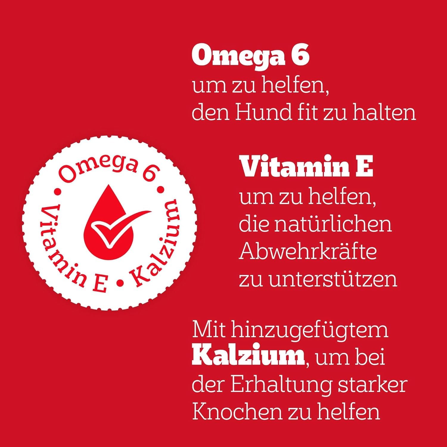 Das im Hundesnack enthaltene Vitamin E trägt zur Unterstützung der natürlichen Abwehrkräfte bei.