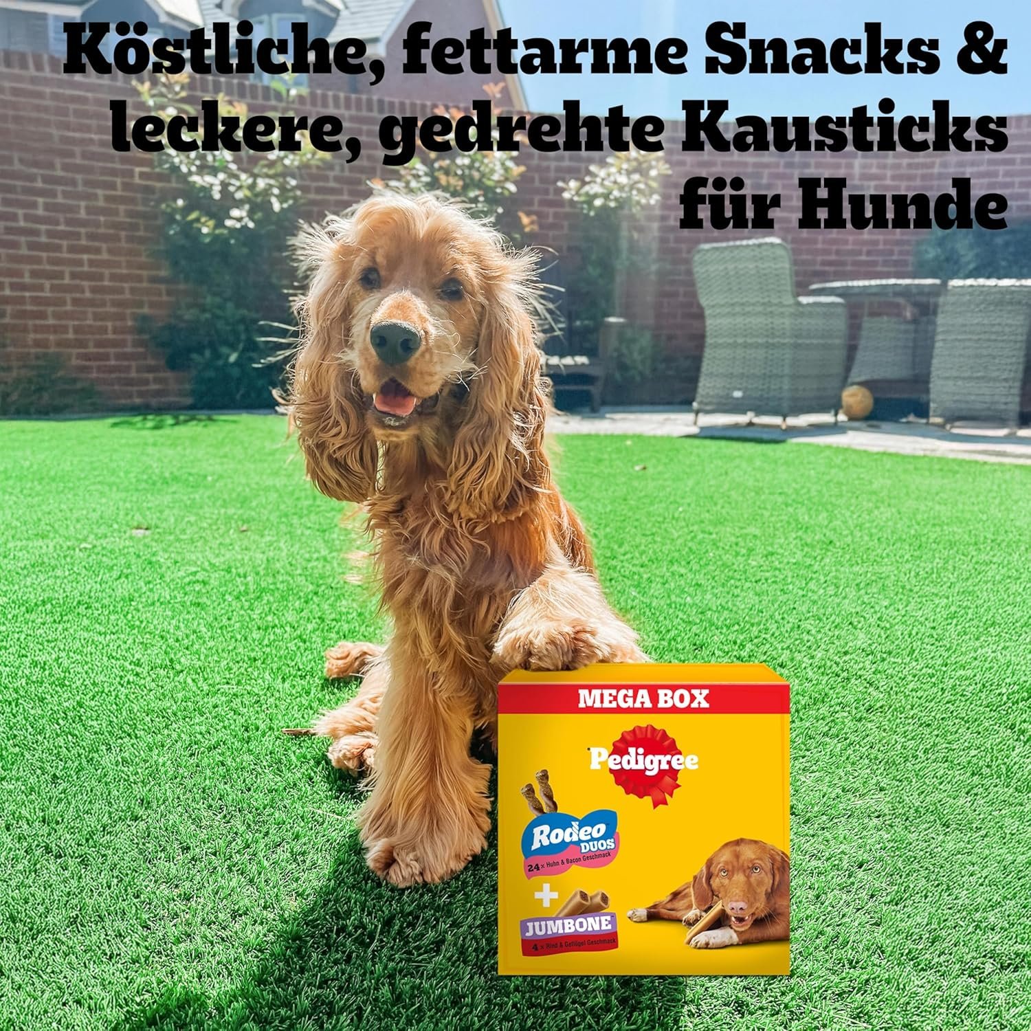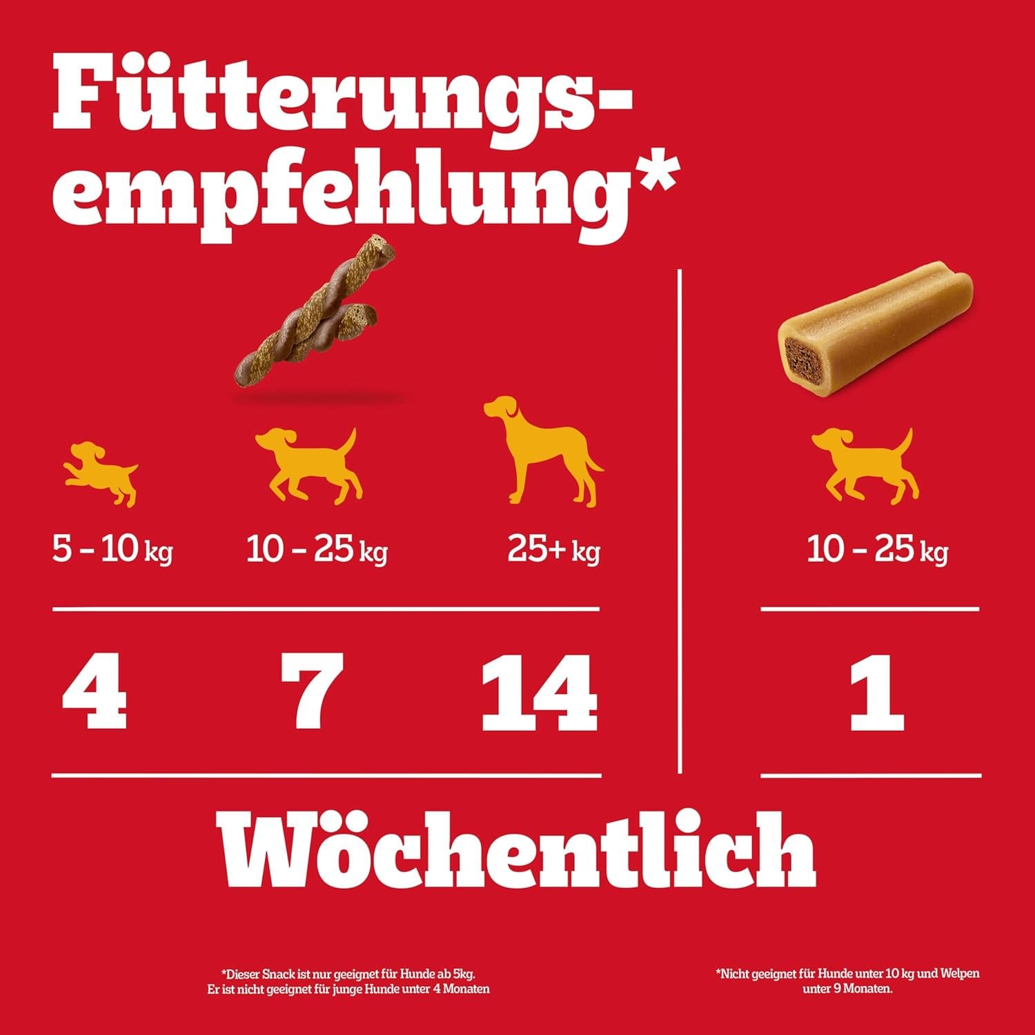 Diese köstlichen Kaustangen für Hunde von PEDIGREE sind mit Mineralien, darunter Kalzium, angereichert und sorgen für starke Knochen.