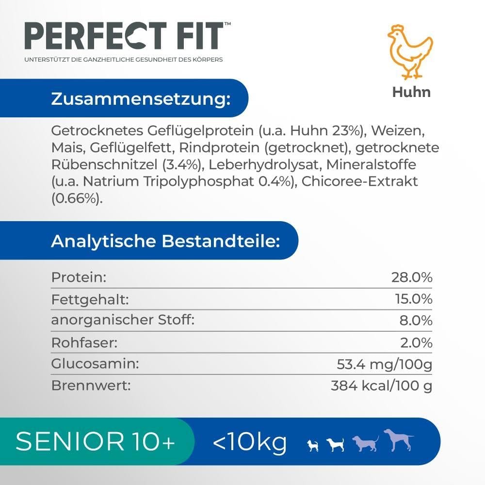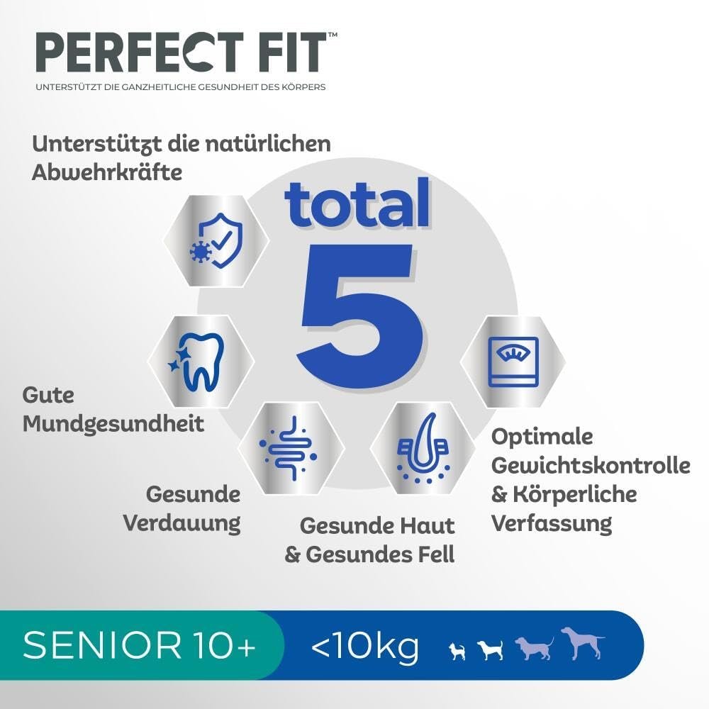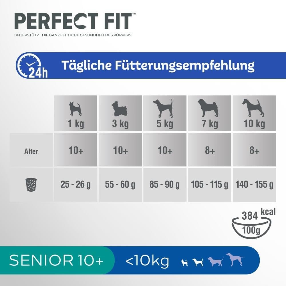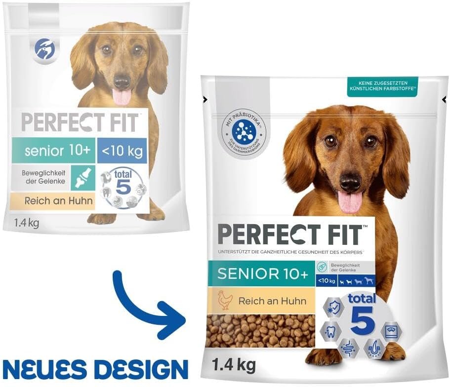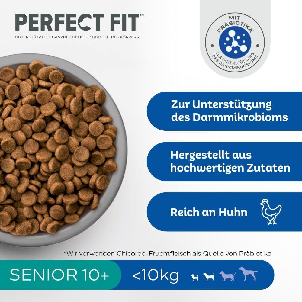 PERFECT FIT Senior Hundefutter 10+ XS/S wurde speziell für die Bedürfnisse älterer Hunde entwickelt: maulgroße Kroketten für kleinere Mäuler, gesundes Herz, Gelenkbeweglichkeit.