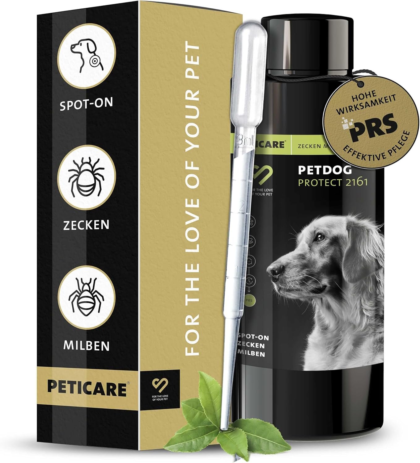 Millimetergenaue PRS-Pipette für den sparsamen Einsatz: Ihr Vierbeiner wird lange von der Wirkung des Mittels profitieren. Dank des speziellen PRS-Systems verzichten wir bewusst auf einen wirkungslosen Sprühkopf. Mit der speziellen Peticare-Pipette wird je nach Gewicht des Hundes genau die benötigte Menge aufgenommen und auf die Haut entlang der Wirbelsäule aufgetragen.