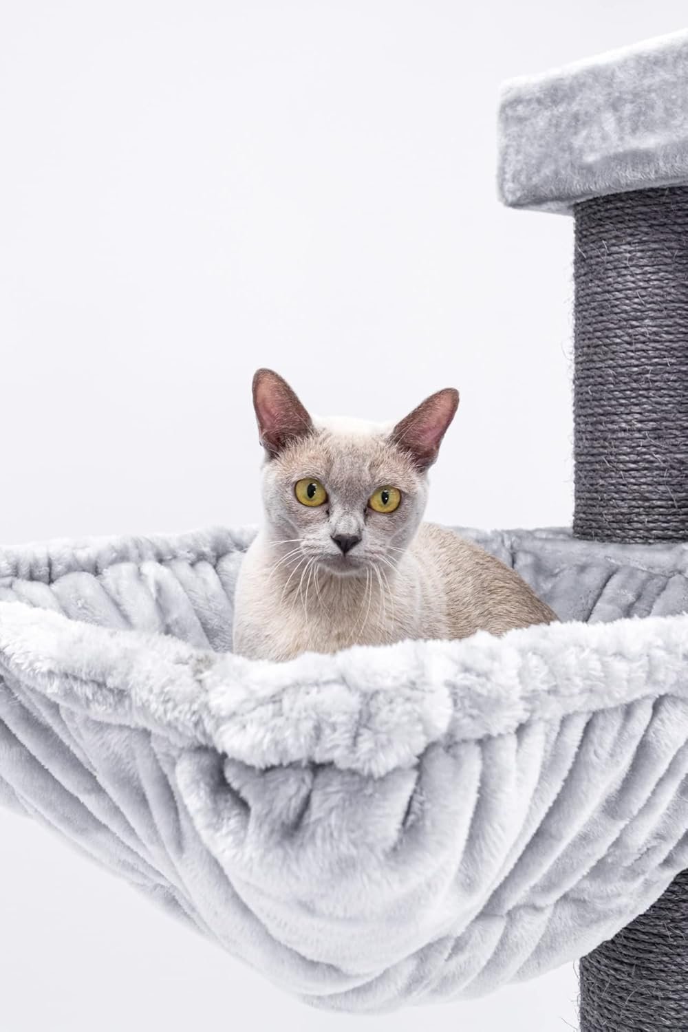 Schwergewichtig – geeignet für alle Katzenrassen, ideal für Maine Coons, Ragdolls und andere große oder schwere Katzen. Die besonders kuschelige und stabile Hängematte hat eine quadratische Form und ist problemlos bis zu 25 kg belastbar