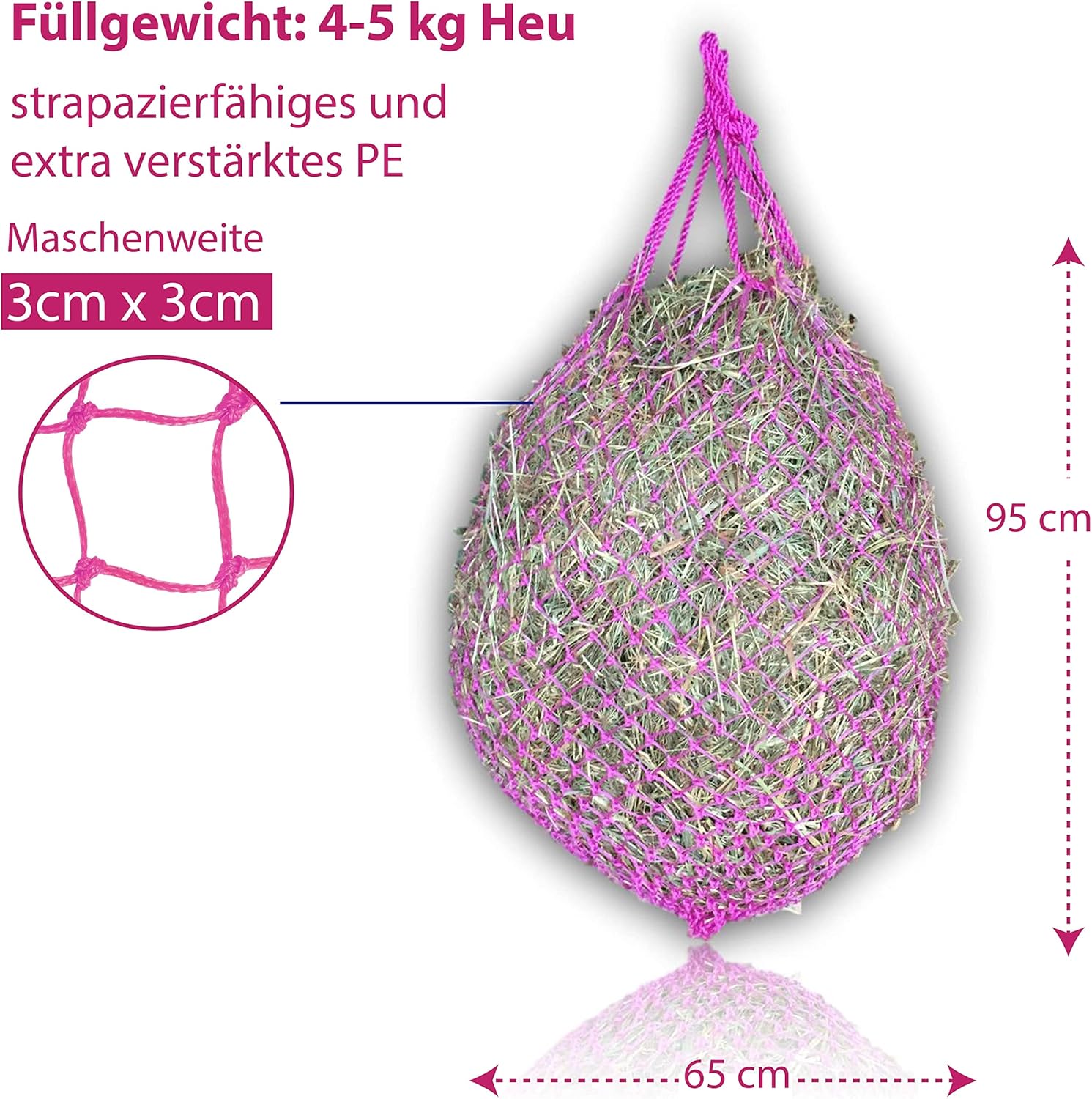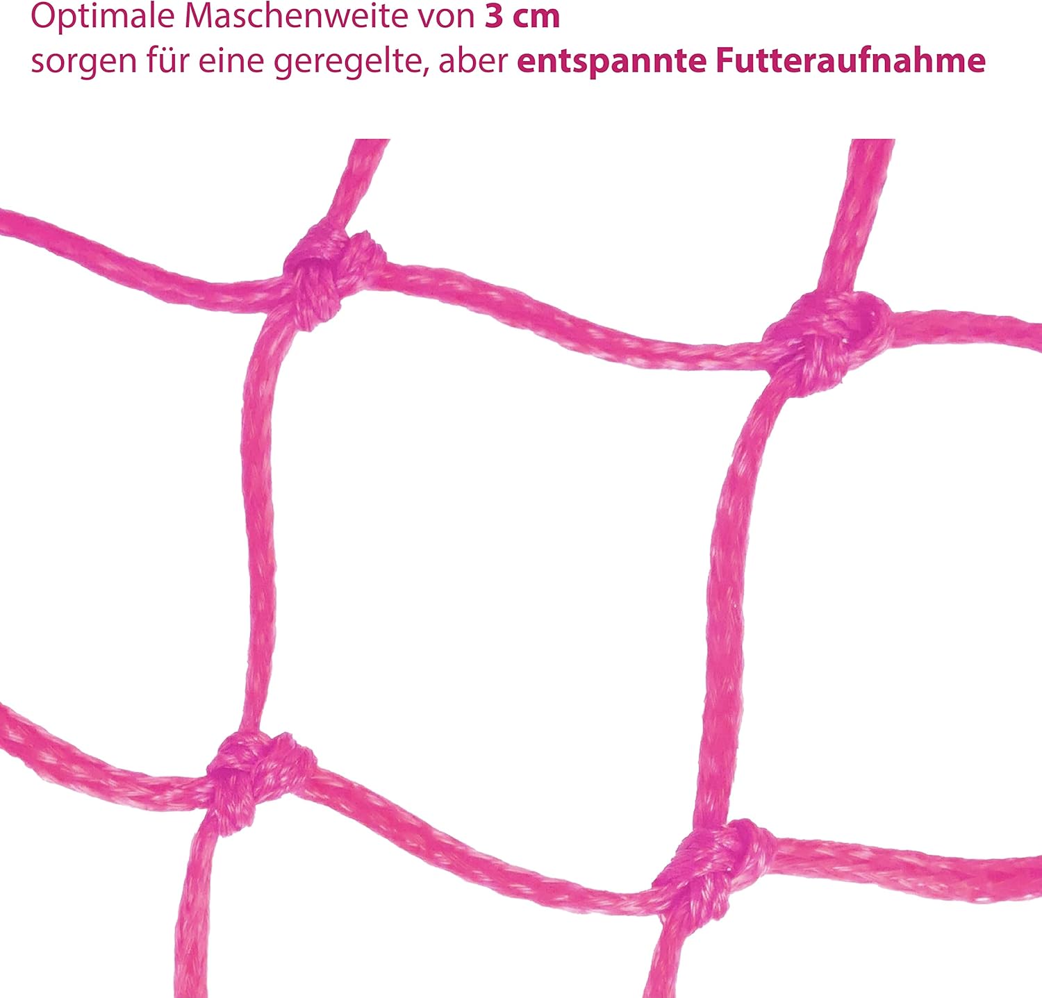 Extra dichte 3 cm Maschen: Das große Heunetz fasst 4,5 kg Füllgewicht und sorgt durch dichte Maschen für weniger Heuverlust. Dadurch sorgt das Heunetz gleichzeitig für einen saubereren Stall oder Anhänger.