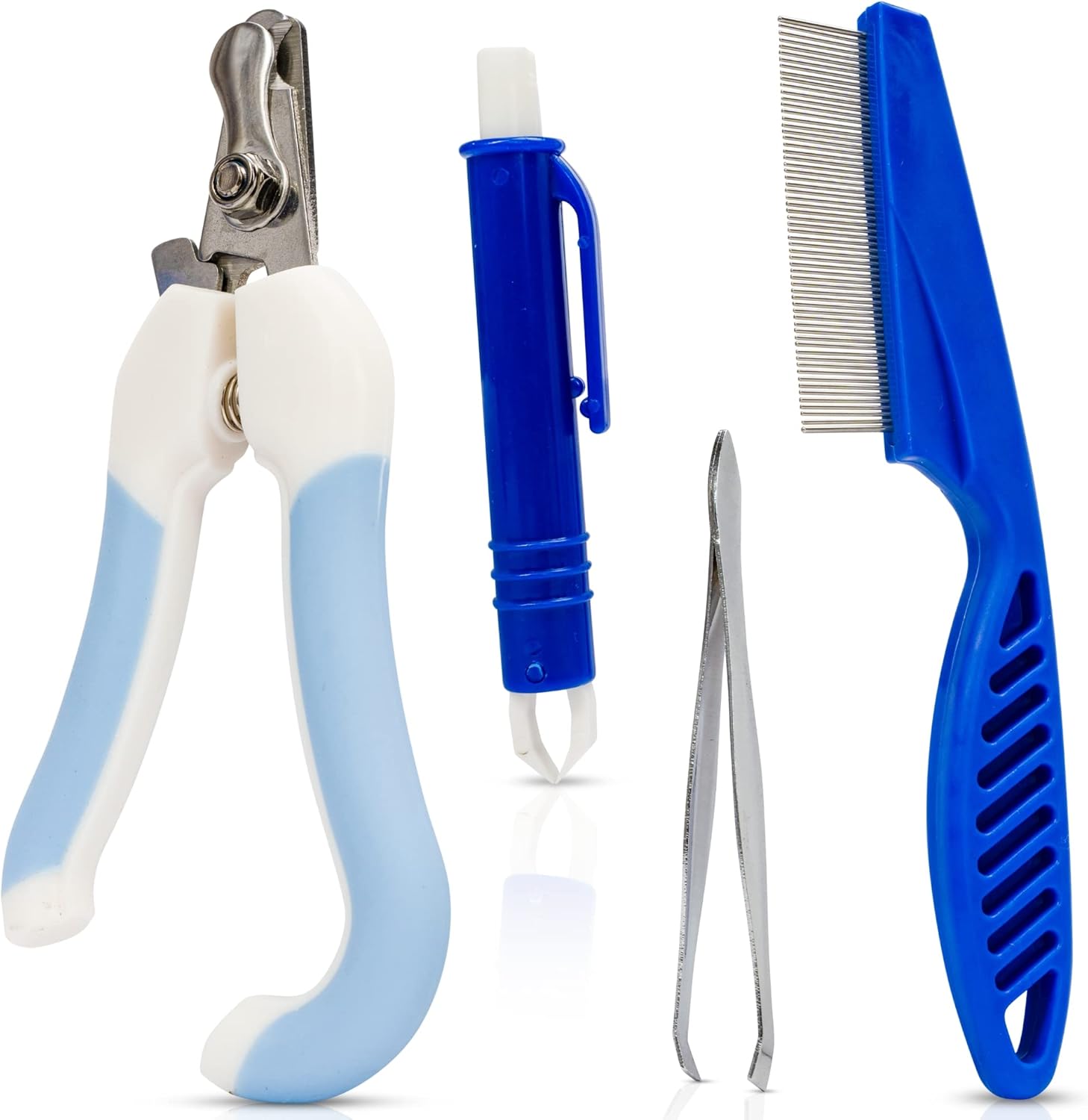Unser Pflegeset besteht aus Krallenschere, Zeckenzange, Flohkamm und Pinzette. Damit ist es Ihr perfekter Begleiter für alle Eventualitäten im Tieralltag.