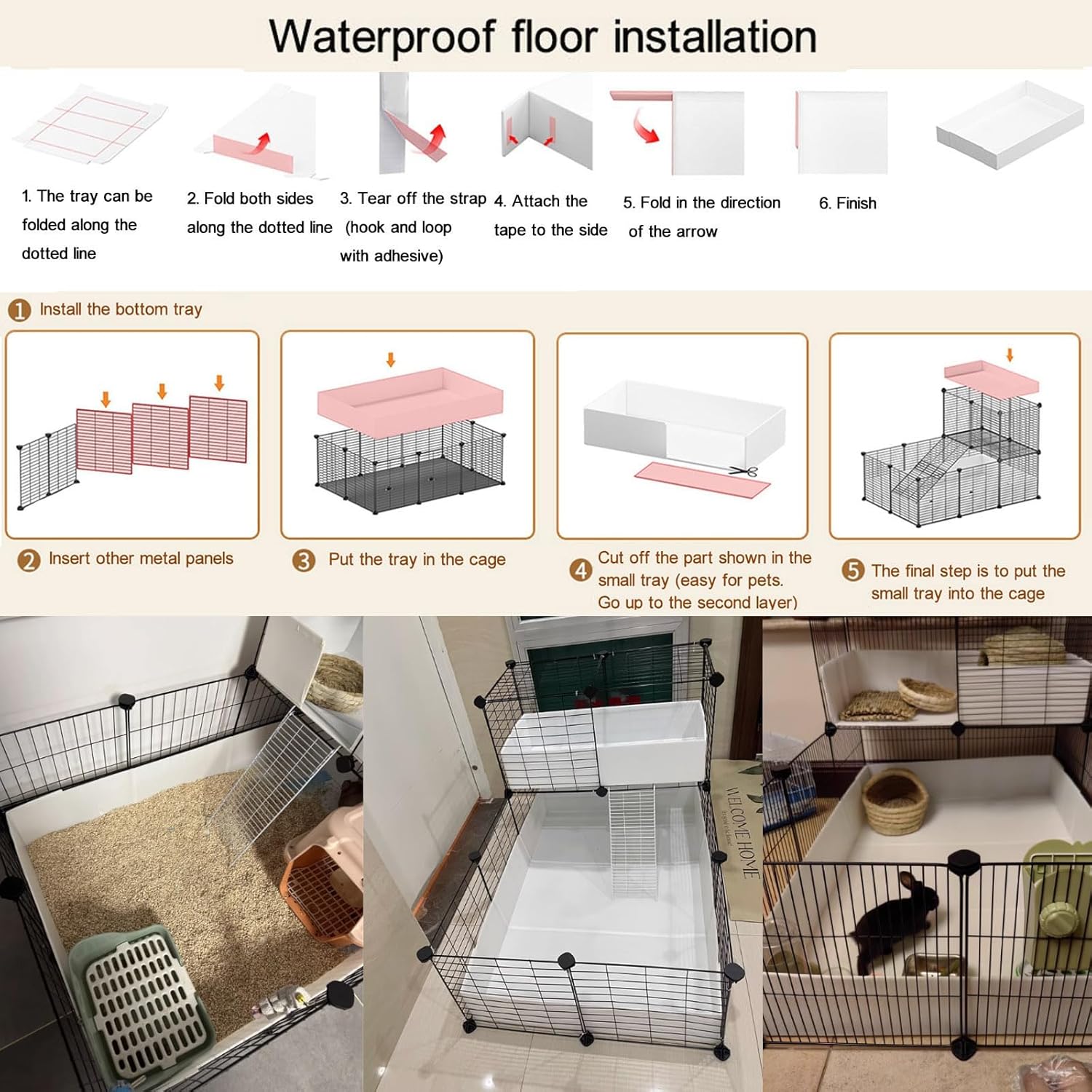 EINFACHE WARTUNG Die wasserdichte Bodenplatte verhindert, dass Lecks oder Schmutz aus dem Käfig austreten, was die Reinigung mühelos macht und den Lebensraum Ihres Haustieres hygienisch hält.