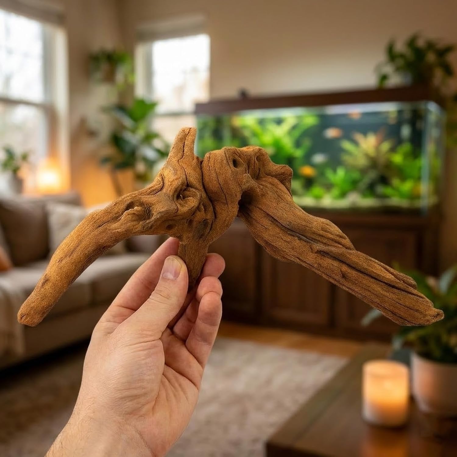 Sicher und langlebig: Das Treibholz ist sorgfältig verarbeitet und frei von Schadstoffen, sicher für Fische, Garnelen und andere Aquarienbewohner; Die robuste Struktur sorgt für eine lange Lebensdauer
