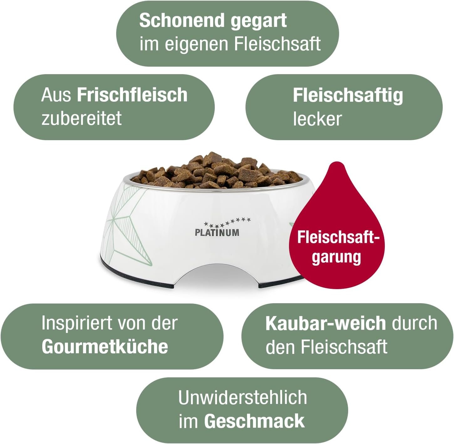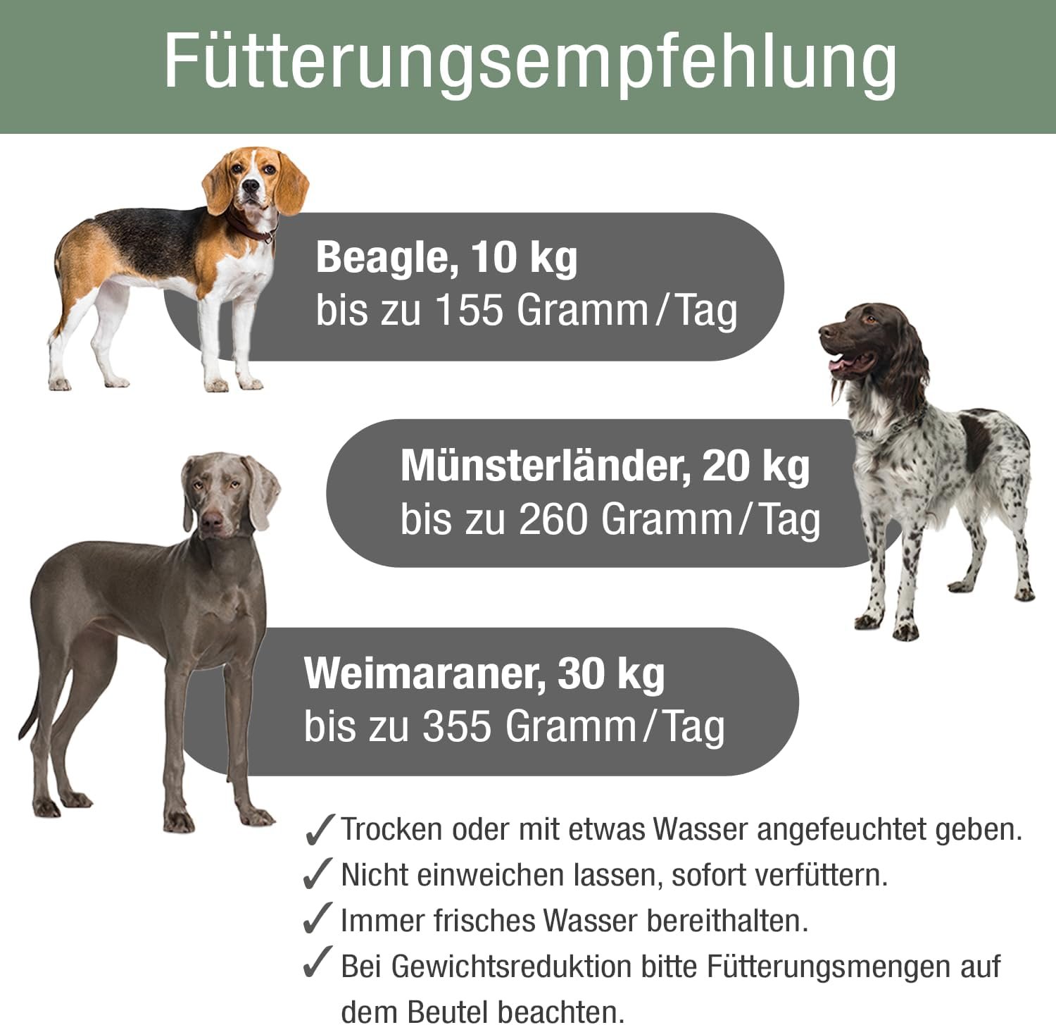 Details – Das Hundefutter ist besonders lecker, nährstoffreich wie BARF, leicht verdaulich, kaubar weich durch den Fleischsaft und quillt nicht im Magen auf. Dadurch wird das Risiko einer Magendrehung verringert.