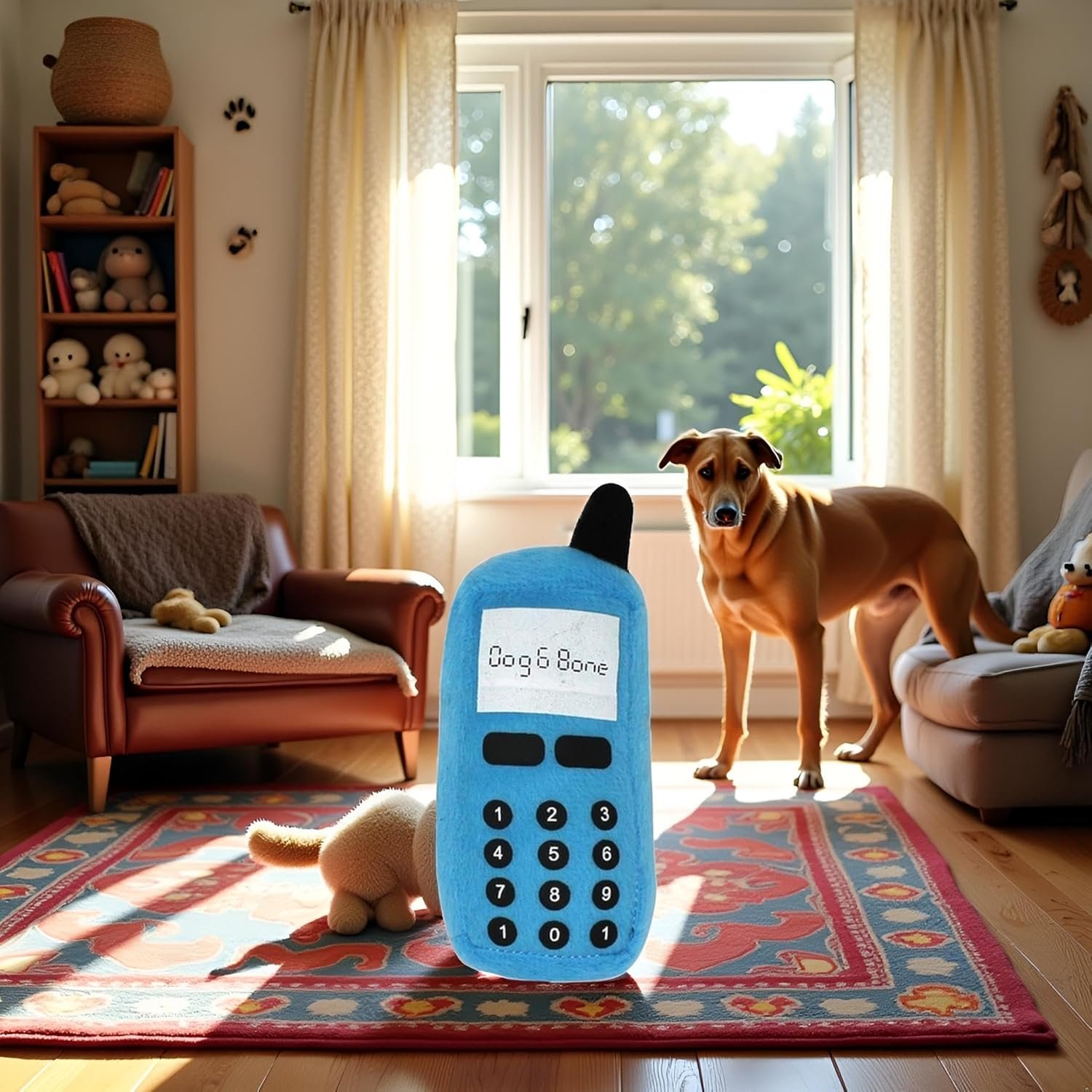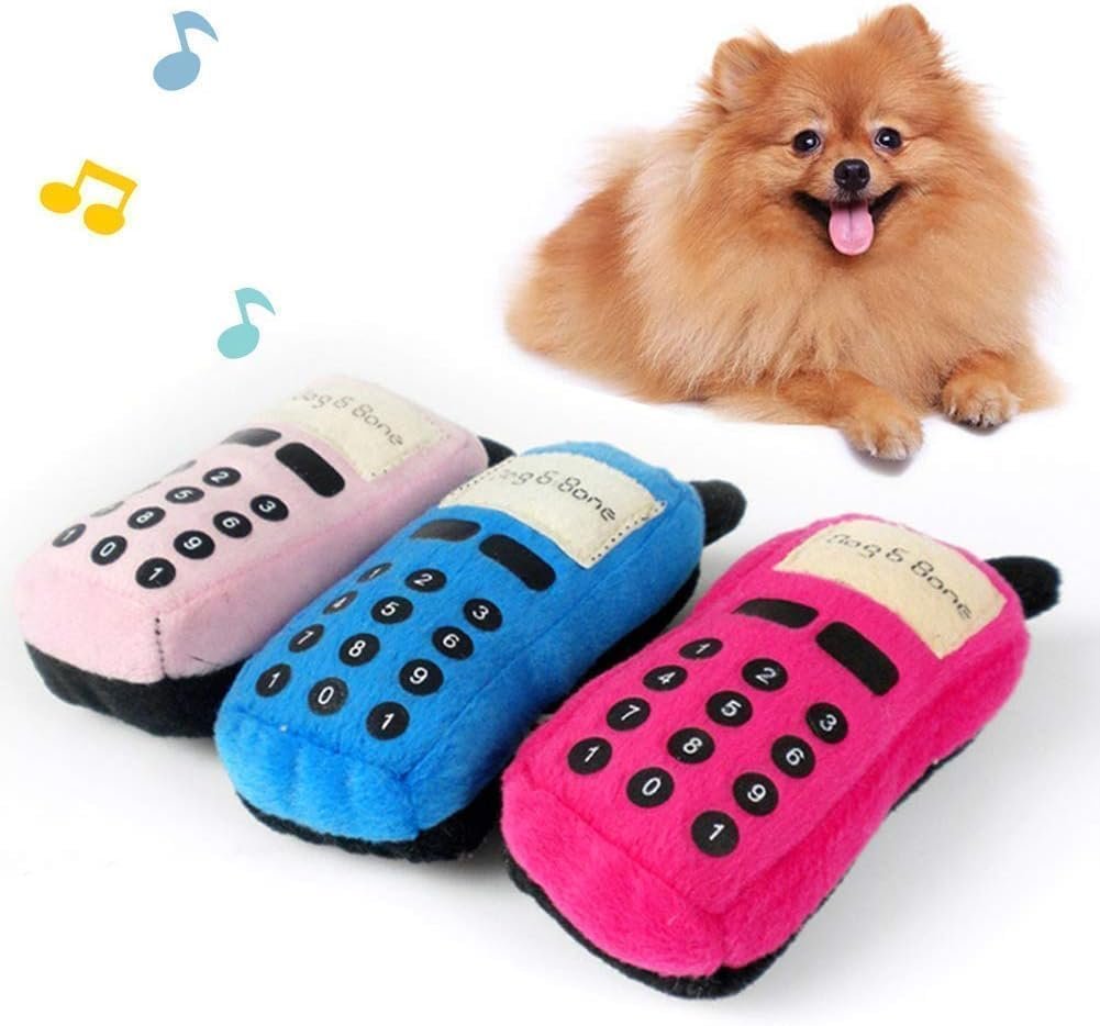 DESIGNMERKMALE: Bezauberndes Plüschtier in Handyform, speziell für kleine bis mittelgroße Hunde entwickelt, mit Quietscher für zusätzliche Unterhaltung