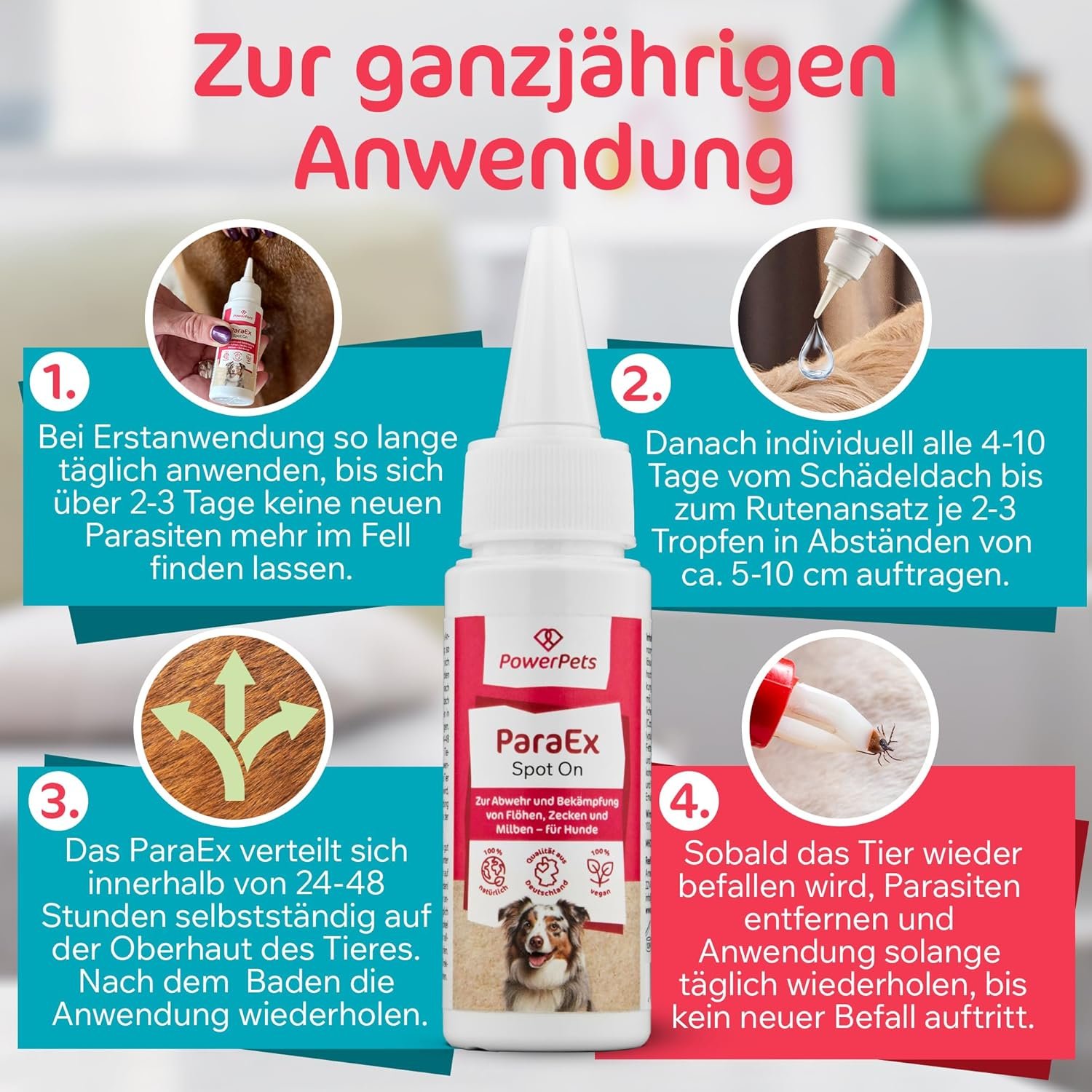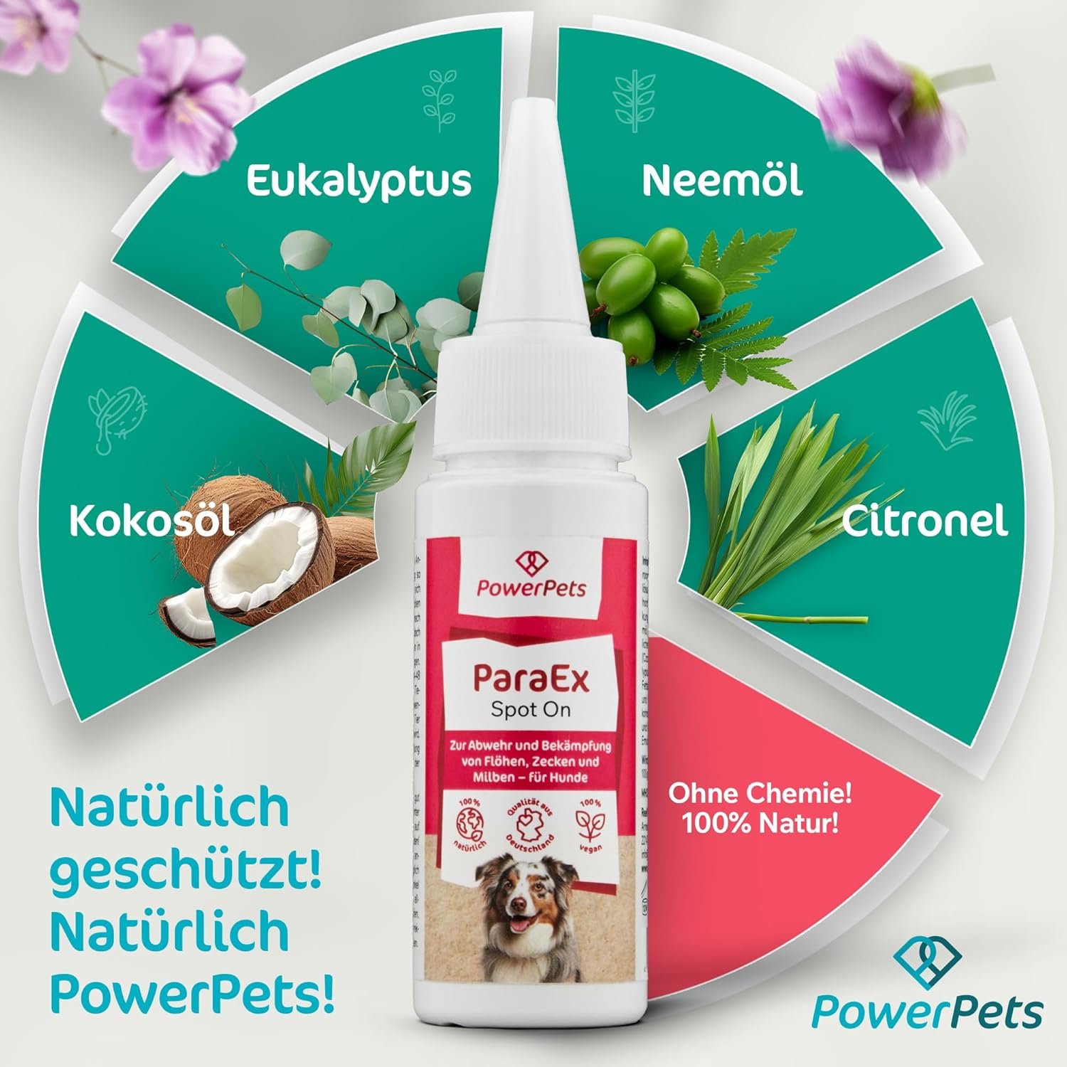 Steigen Sie jetzt auf Ihr rein natürliches Produkt gegen Flöhe, Zecken und andere lästige Parasiten um.